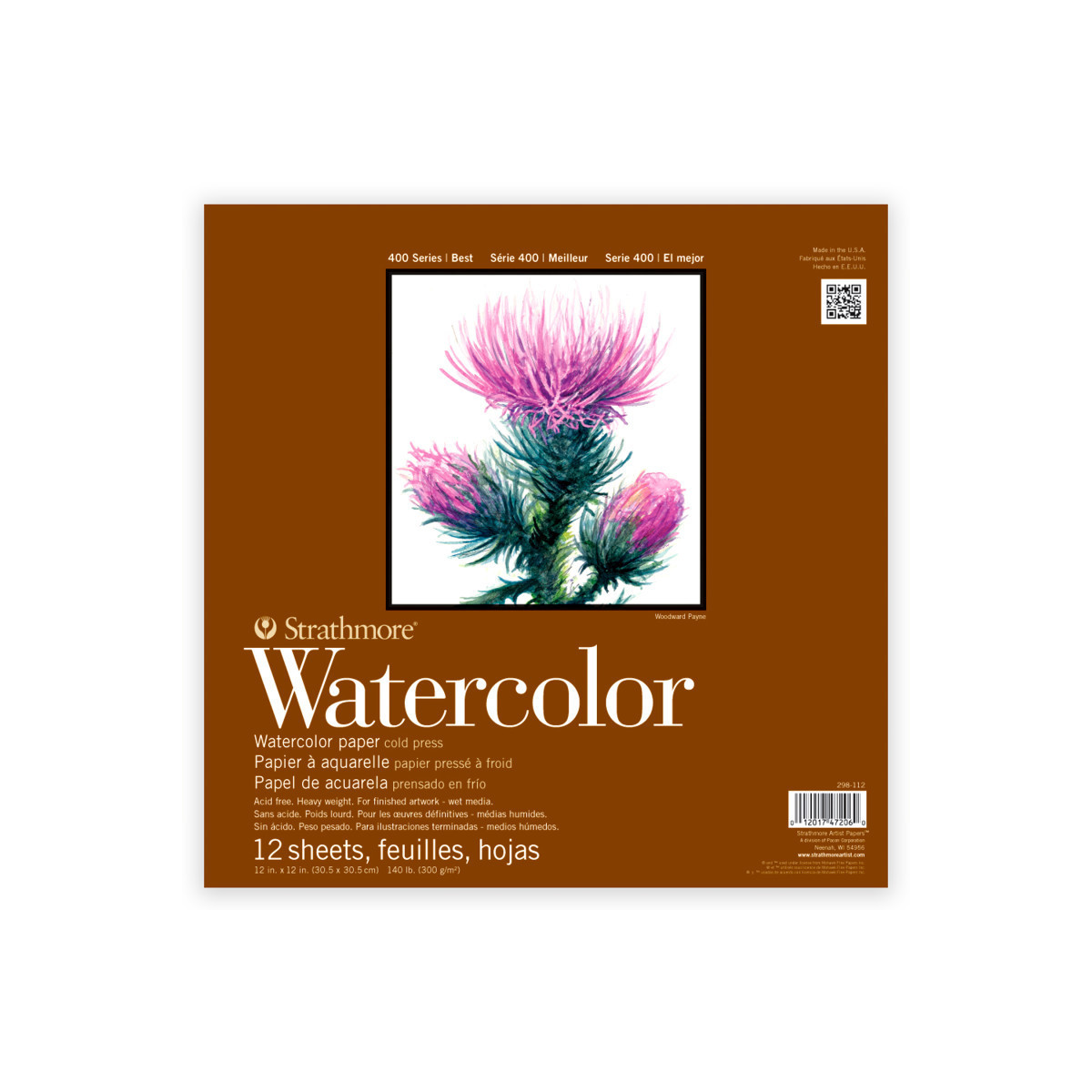 Strathmore 400 Series Watercolor Paper Pad, Cold Pressed, Tape Binding, 12 Sheet, 12x12 inch, 1 Count