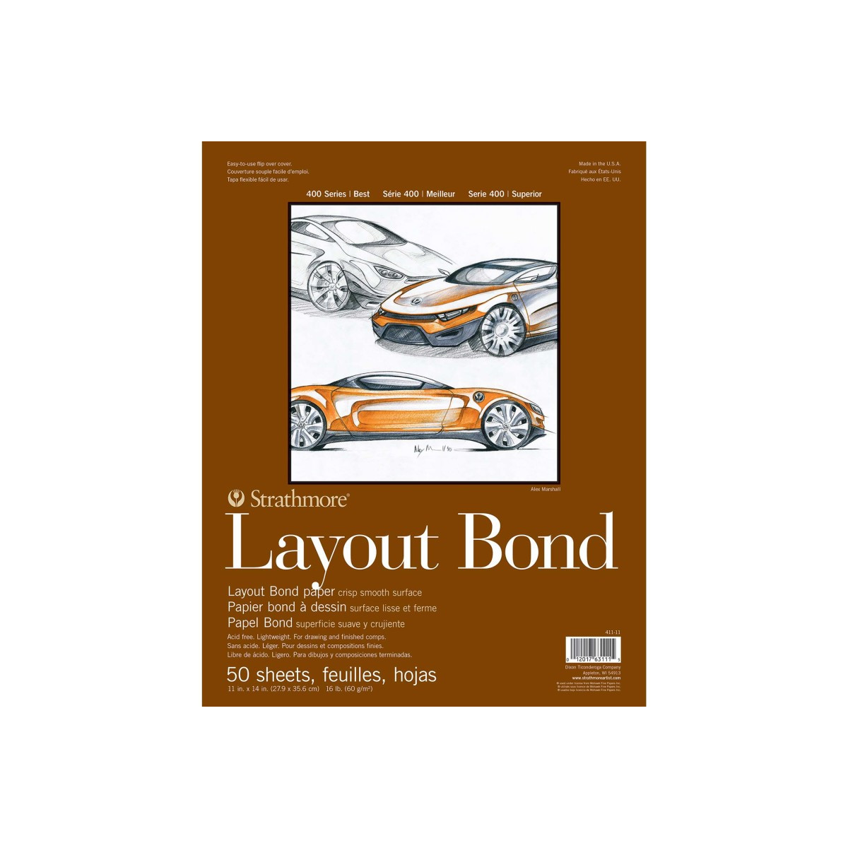 Introducing Strathmore 400 Series Layout Bond Paper--an ideal layout paper for rough drawings or finished compositions, suitable for pencil, pen, and marker; this lightweight, semi-transparent paper is ideal for designing and rendering. Our 400 Series is often easily recognized thanks to the iconic brown cover used across our fine art pads. Known for its dependable quality & time-tested durability, this series is a staple in the hands of art students & professional artists, from their first art class in middle school, through to high school competitions, collegiate course work & on to a career as a professional artist, fashion designer, architect, illustrator, animator or engineer.