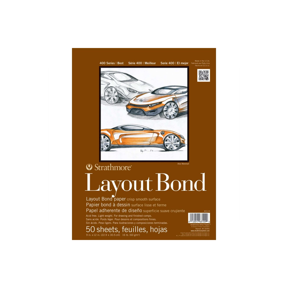 Introducing Strathmore 400 Series Layout Bond Paper--an ideal layout paper for rough drawings or finished compositions, suitable for pencil, pen, and marker; this lightweight, semi-transparent paper is ideal for designing and rendering. Our 400 Series is often easily recognized thanks to the iconic brown cover used across our fine art pads. Known for its dependable quality & time-tested durability, this series is a staple in the hands of art students & professional artists, from their first art class in middle school, through to high school competitions, collegiate course work & on to a career as a professional artist, fashion designer, architect, illustrator, animator or engineer.