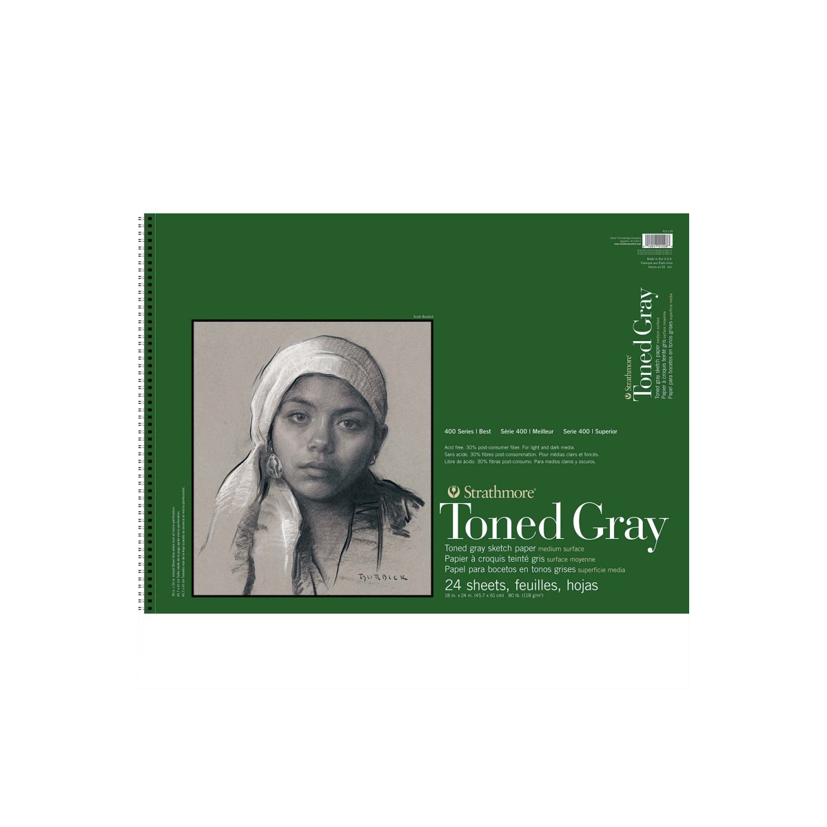 Introducing Strathmore 400 Series Sketch Paper—a trusted companion for art students for decades, beloved for its reliability & quality. This sketch paper’s toothy surface is perfect for capturing the nuances of every pencil stroke, while its durable construction withstands heavy erasing & blending. For professional artists, it offers a familiar yet refined experience, making it the go-to choice for sketches that demand both precision & spontaneity. Now available with a mid-tone background that allows artists to work quicker and achieve unique affects by adding deep shadows and highlights that pop. Each sheet contains fiber inclusions for visual interest and is 100% recycled. Our 400 Series is often easily recognized thanks to the iconic brown cover used across our fine art pads.