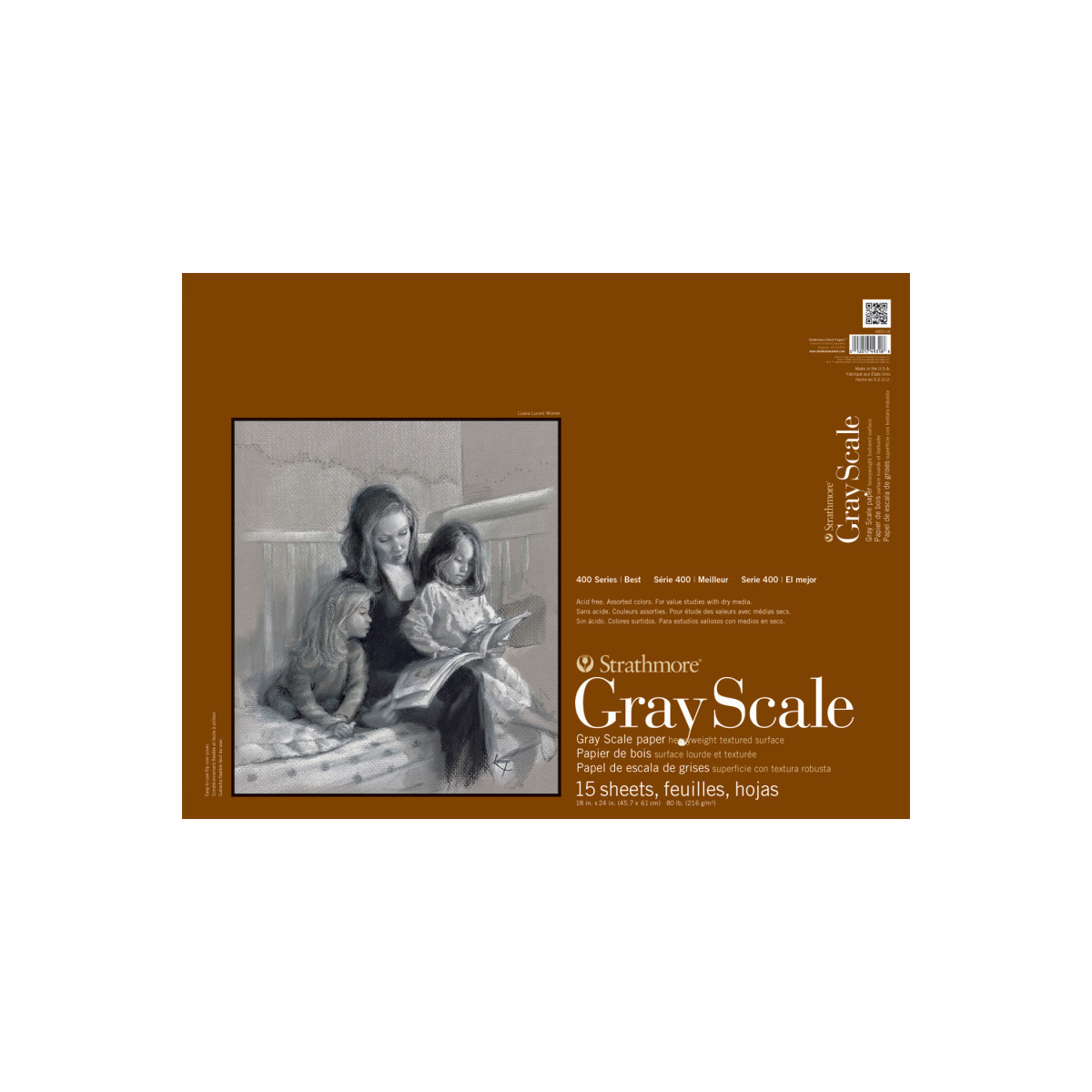 Introducing Strathmore 400 Series Gray Scale Paper-- a textured heavyweight paper in gray scale colors ranging from white to black, making it perfect for value studies using charcoal, pastel, chalk, and sketching sticks. Our 400 Series is often easily recognized thanks to the iconic brown cover used across our fine art pads. Known for its dependable quality & time-tested durability, this series is a staple in the hands of art students & professional artists, from their first art class in middle school, through to high school competitions, collegiate course work & on to a career as a professional artist, fashion designer, architect, illustrator, animator or engineer.