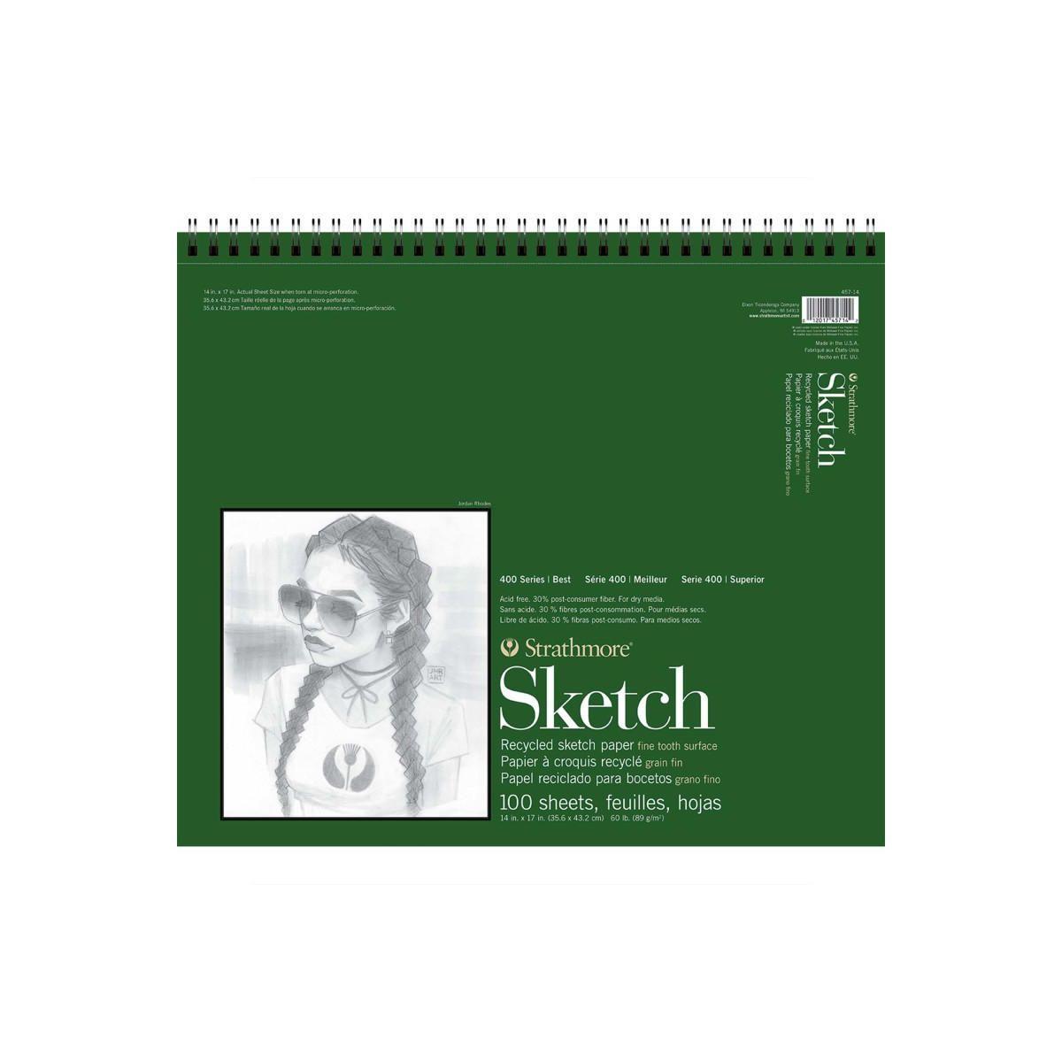 Strathmore 400 Series Sketch Paper Pad, Recycled, Side Wire Binding, 100 Sheet, 14x17 inch, 1 Count