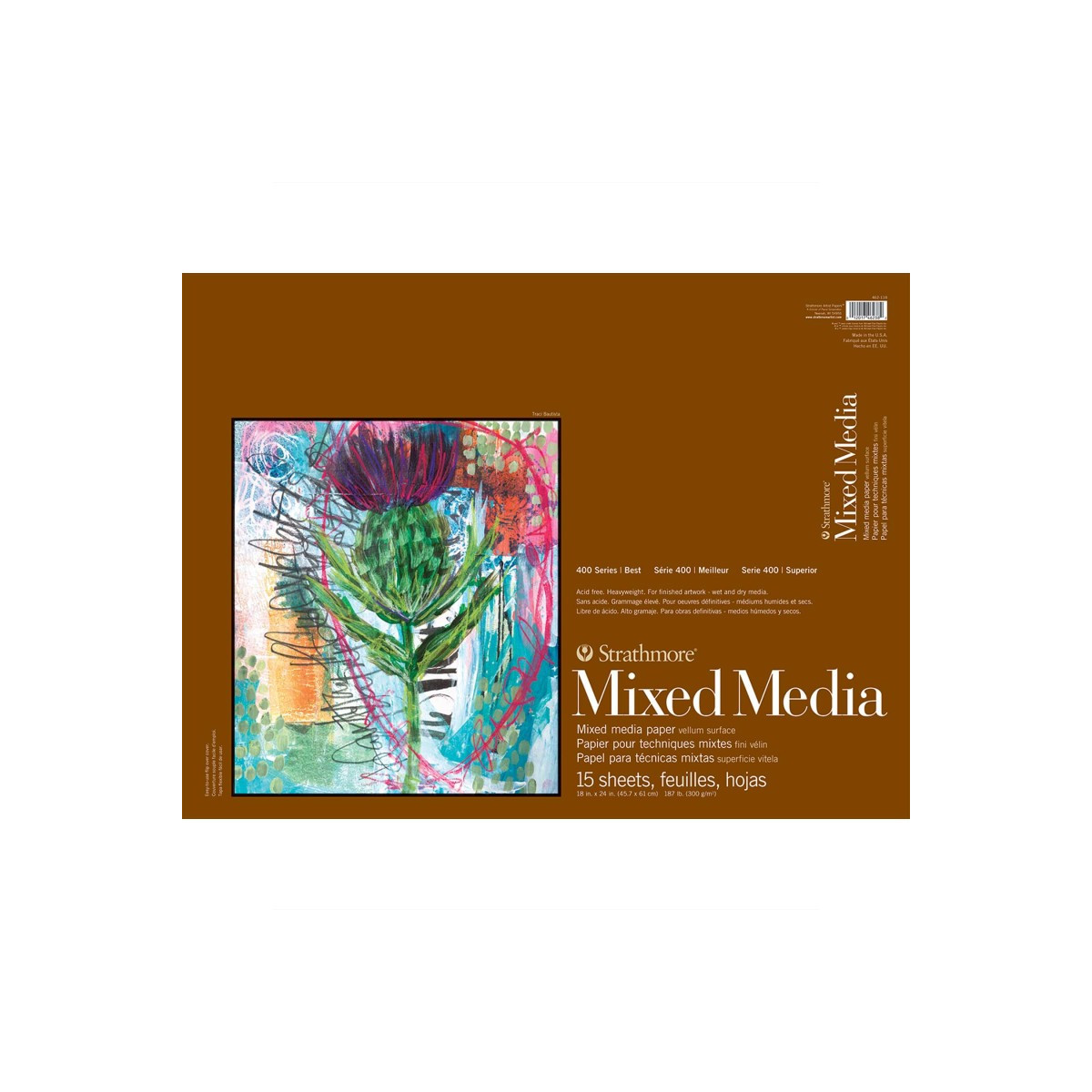 Introducing Strathmore 400 Series Mixed Media Paper—a versatile surface for professional artists, ready to handle whatever your creativity throws at it. By combining the characteristics of watercolor paper with the finish of a drawing sheet, we've created the ultimate paper for artists to confidently explore watercolor washes, ink lines, & layers of pastel or colored pencil without fear of warping or tearing. Freely create richly dynamic pieces that truly stand out. Our 400 Series is often easily recognized thanks to the iconic brown cover used across our fine art pads.