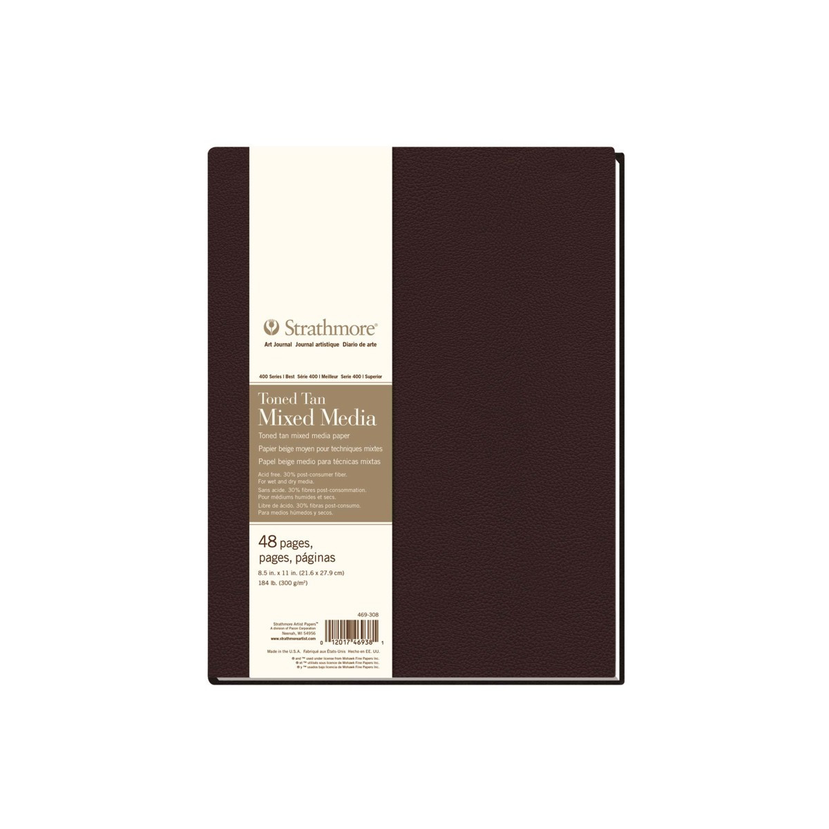 Strathmore 400 Series Art Journal Mixed Media Paper, Toned Tan, Hardbound Binding, 96 Page/48 Sheet, 8.5x11 inch, 1 Count