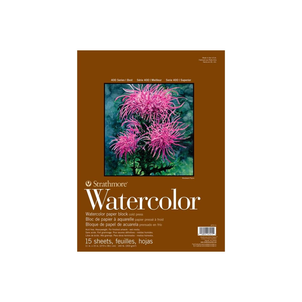 Introducing Strathmore 400 Series Watercolor Paper—a cold press sheet offering just the right amount of texture to bring depth & character to every brushstroke. Its absorbent surface beautifully captures vibrant colors while allowing for smooth blends & soft transitions, making your watercolors come to life. This versatile paper is perfect for everything from delicate washes to bold, expressive techniques, perfect for professional watercolor artists. What makes a Watercolor Block different from a Watercolor Pad? The paper is bound on all 4 sides, keeping it flat while the artist works without the need for taping edges down. Our 400 Series is often easily recognized thanks to the iconic brown cover used across our fine art pads. Known for its dependable quality & time-tested durability, this series is a staple in the hands of art students & professional artists, from their first art class in middle school, through to high school competitions, collegiate course work & on to a career as a professional artist, fashion designer, architect, illustrator, animator or engineer. Artists working with watercolor paint, acrylic paint, oil paint, pastel, colored pencil, charcoal, marker, pen, ink & more have a curated paper customized for their needs. Confidently create showcase-worthy pieces for galleries, competitions & online market places with this beloved series!