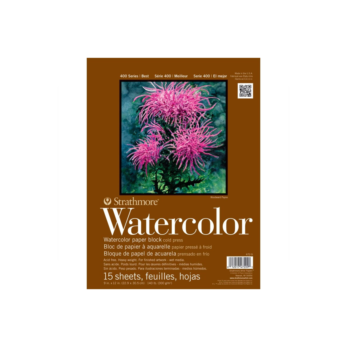 Introducing Strathmore 400 Series Watercolor Paper—a cold press sheet offering just the right amount of texture to bring depth & character to every brushstroke. Its absorbent surface beautifully captures vibrant colors while allowing for smooth blends & soft transitions, making your watercolors come to life. This versatile paper is perfect for everything from delicate washes to bold, expressive techniques, perfect for professional watercolor artists. What makes a Watercolor Block different from a Watercolor Pad? The paper is bound on all 4 sides, keeping it flat while the artist works without the need for taping edges down. Our 400 Series is often easily recognized thanks to the iconic brown cover used across our fine art pads. Known for its dependable quality & time-tested durability, this series is a staple in the hands of art students & professional artists, from their first art class in middle school, through to high school competitions, collegiate course work & on to a career as a professional artist, fashion designer, architect, illustrator, animator or engineer. Artists working with watercolor paint, acrylic paint, oil paint, pastel, colored pencil, charcoal, marker, pen, ink & more have a curated paper customized for their needs. Confidently create showcase-worthy pieces for galleries, competitions & online market places with this beloved series!