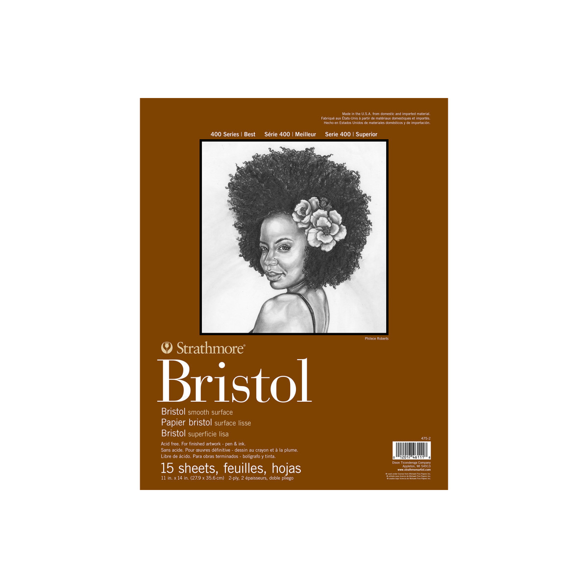Introducing Strathmore 400 Series Bristol Paper—expertly crafted from 2-ply Bristol, providing a smooth, durable surface perfect for fine line and detailed drawings with pen, ink, and marker. A popular choice among illustrators & drawing artists because of a stiffer, museum quality surface that is ready to display without additional mounting. The term Bristol derives from the early days of European papermaking when mills would send their finest papers to Bristol, England to be pasted together to form heavyweight drawing sheets. Our Bristol Paper is available in two finishes: Smooth is excellent for fine line drawings using pen & ink or marker; Vellum is excellent for pencil, charcoal, and pastel, as well as airbrush and light washes. Our 400 Series is often easily recognized thanks to the iconic brown cover used across our fine art pads. Known for its dependable quality & time-tested durability, this series is a staple in the hands of art students & professional artists, from their first art class in middle school, through to high school competitions, collegiate course work & on to a career as a professional artist, fashion designer, architect, illustrator, animator or engineer. Artists working with watercolor paint, acrylic paint, oil paint, pastel, colored pencil, charcoal, marker, pen, ink & more have a curated paper customized for their needs. Confidently create showcase-worthy pieces for galleries, competitions & online market places with this beloved series!
