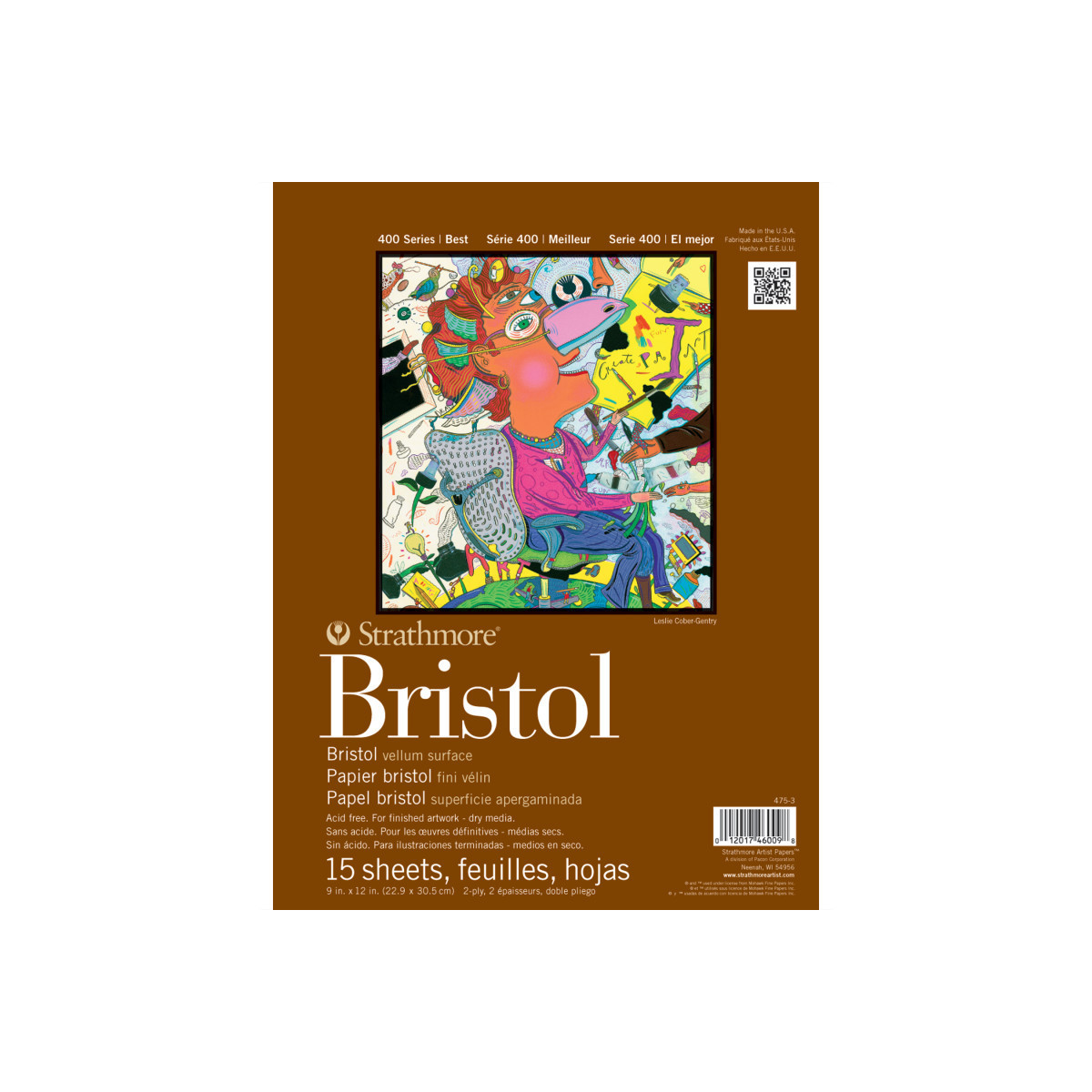 Introducing Strathmore 400 Series Bristol Paper—expertly crafted from 2-ply Bristol, providing a smooth, durable surface perfect for fine line and detailed drawings with pen, ink, and marker. A popular choice among illustrators & drawing artists because of a stiffer, museum quality surface that is ready to display without additional mounting. The term Bristol derives from the early days of European papermaking when mills would send their finest papers to Bristol, England to be pasted together to form heavyweight drawing sheets. Our Bristol Paper is available in two finishes: Smooth is excellent for fine line drawings using pen & ink or marker; Vellum is excellent for pencil, charcoal, and pastel, as well as airbrush and light washes. Our 400 Series is often easily recognized thanks to the iconic brown cover used across our fine art pads. Known for its dependable quality & time-tested durability, this series is a staple in the hands of art students & professional artists, from their first art class in middle school, through to high school competitions, collegiate course work & on to a career as a professional artist, fashion designer, architect, illustrator, animator or engineer. Artists working with watercolor paint, acrylic paint, oil paint, pastel, colored pencil, charcoal, marker, pen, ink & more have a curated paper customized for their needs. Confidently create showcase-worthy pieces for galleries, competitions & online market places with this beloved series!