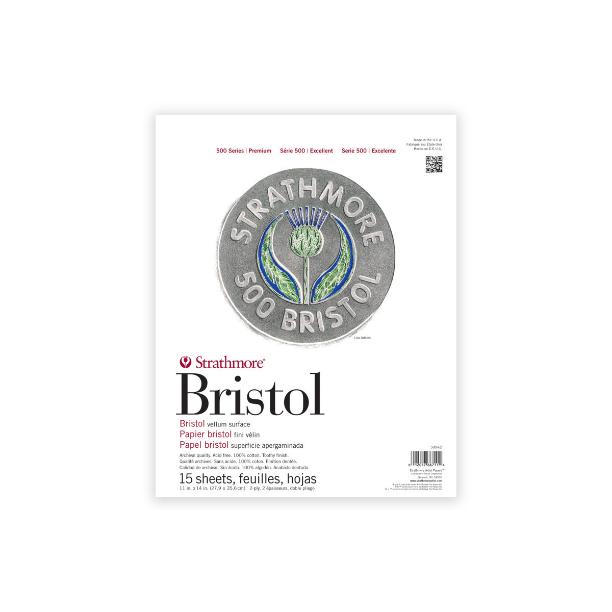 Strathmore 500 Series Bristol Paper Pad, 2-Ply, Vellum Finish, 15 Sheet, 11x14 inch, 1 Count