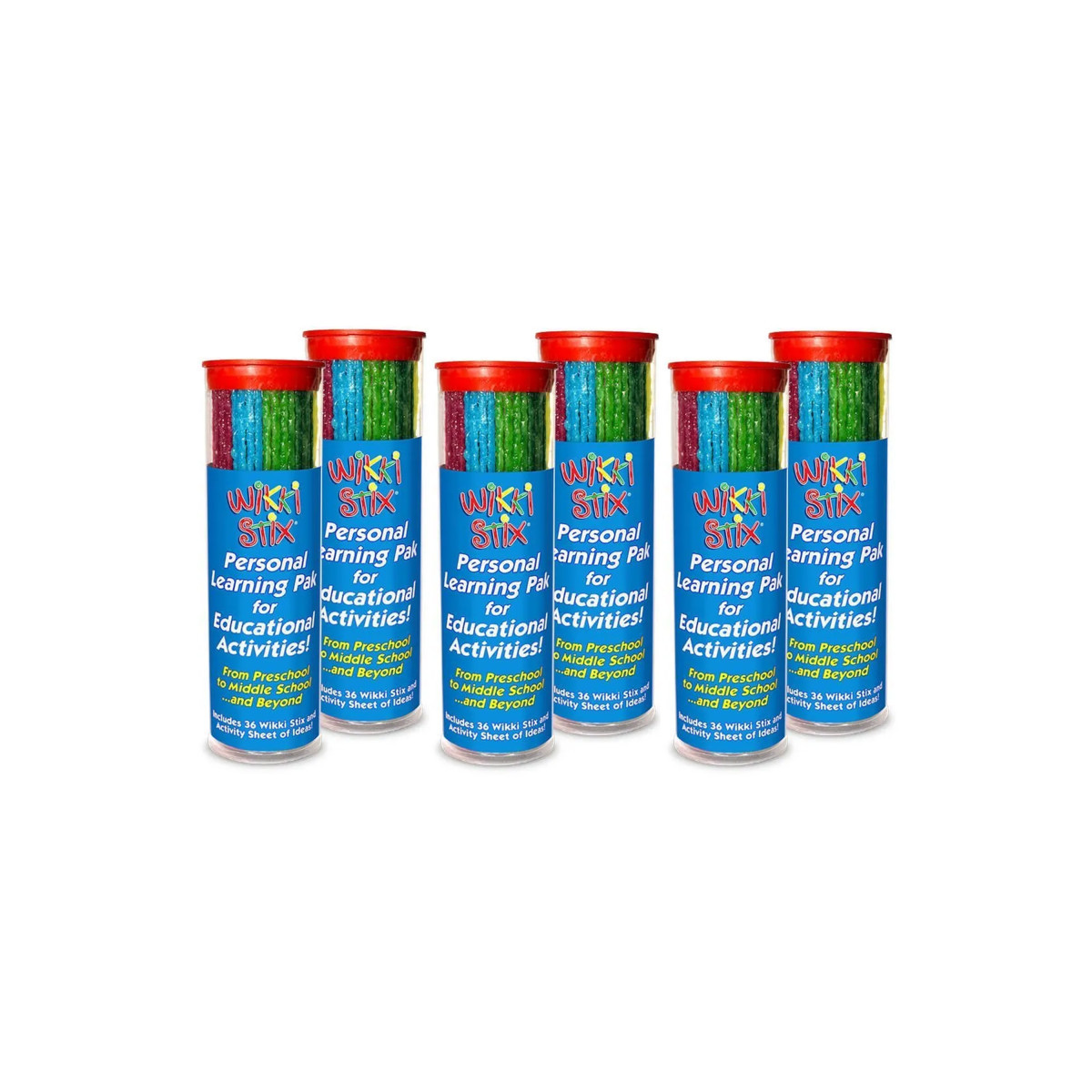 Each Personal Learning Pak includes 36 six-inch Wikki Stix in assorted colors, packaged in small tube for easy storage after use. Includes two-sided colorful flyer showing educational ideas across grades and disciplines. Designed for each students personal use! Stick to paper, posterboard, and most surfaces with fingertip pressure. Ideal for challenging STEM lessons. Sold as 6 packs for a total of 216 Wikki Stix.