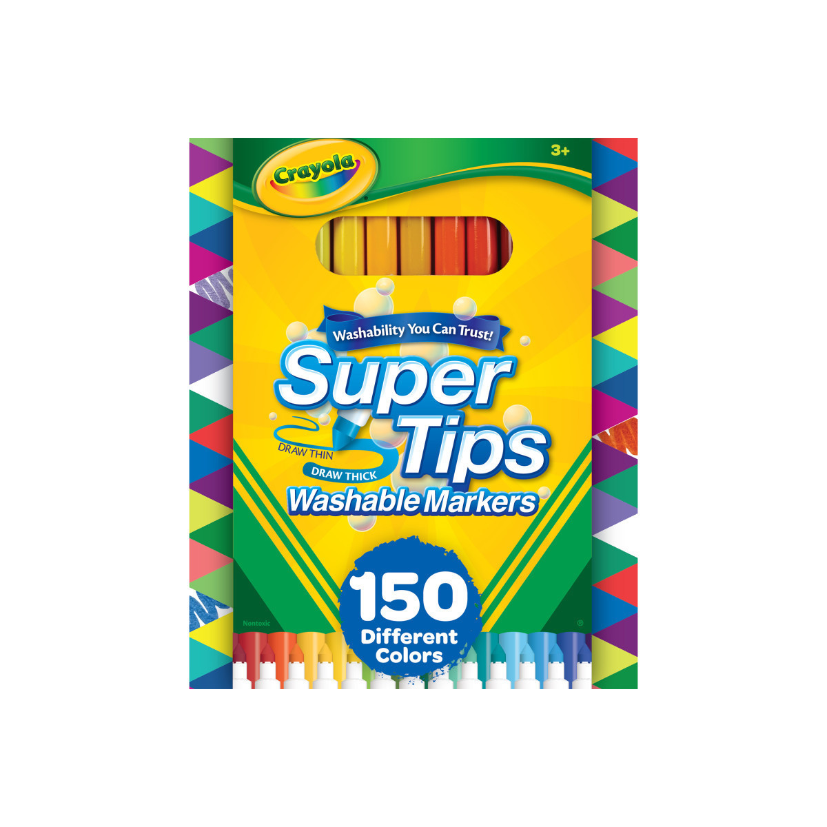 WASHABLE MARKERS: Crayola Super Tips Washable Markers are specially formulated to wash easily from skin and most children's clothing fabrics.