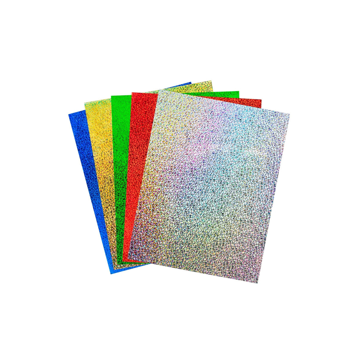Use sparkly self-adhesive holographic paper and watch simple crafts projects take on supernatural dimensions. These sheets measure 8.5 x 11 inches. Self adhesive holographic paper is outstanding for making lively decorations, mosaics, costumes and craft projects. It will also perk up your scrapbook pages, memory albums and greeting cards without the need for glue. It is easy to cut to any shape or size, then just peel and stick. Hygloss Holographic sticker paper is made from the highest quality materials and is sure to exceed your expectations! Each pack includes 5 sheets in assorted colors.