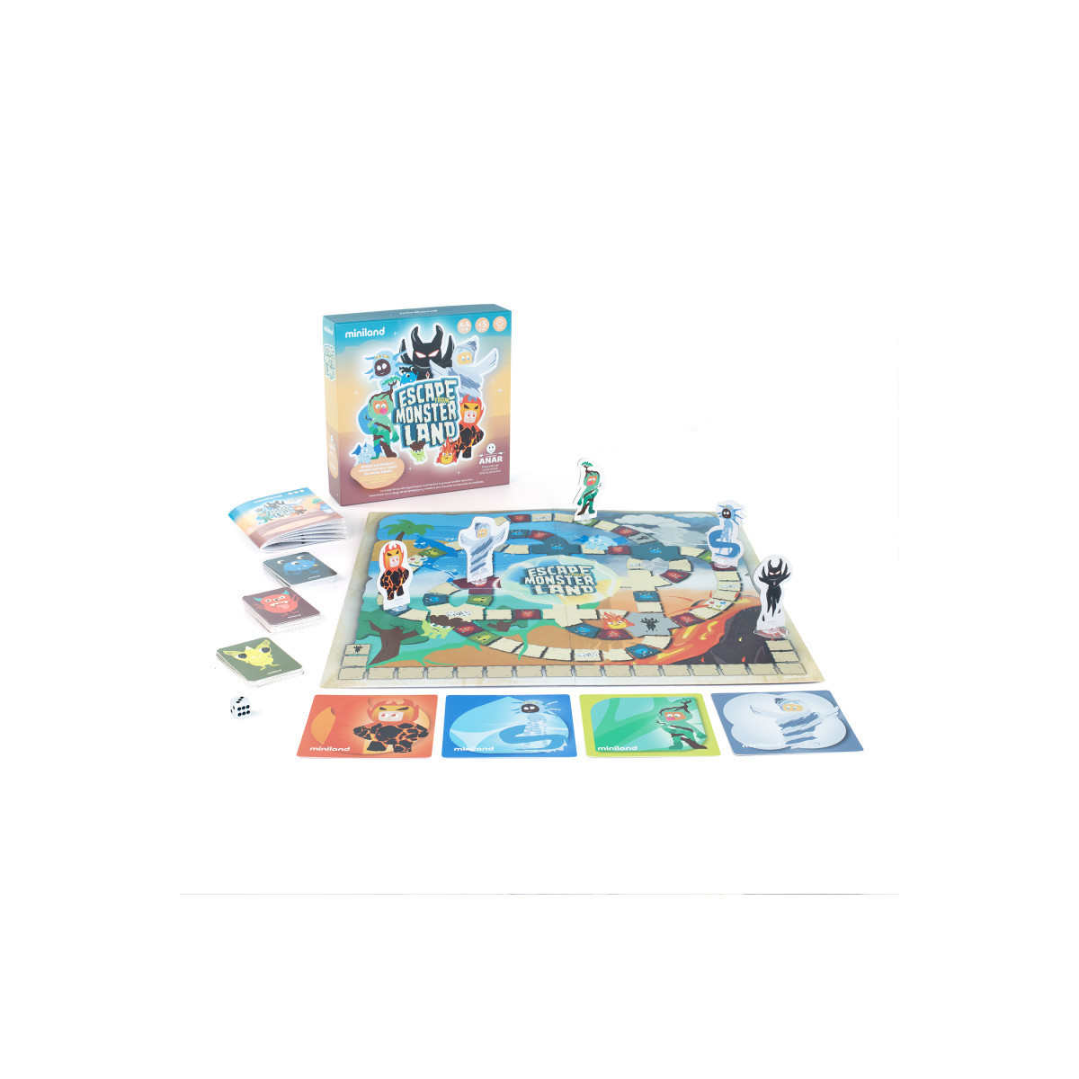 Escape from Monsterland is much more than a board game: it is a cooperative adventure designed to teach values such as empathy, cooperation and resilience. In this board game, children will enter a monstrous world where they must face challenges and tests that will help them identify, understand and confront situations related to bullying. To defeat the evil Lord Dark and return to the magical portal, players must work together and support each other, learning that there is strength in numbers. Each turn is an opportunity to reflect on respect, emotions and how to act in conflicts. Contents: board, dice, 4 player boards, 4 avatars, Lord Dark avatar, 45 cards, booklet and complete guide. Ideal for ages 5 and up, this game combines fun and learning in a unique experience for the whole family or in the classroom.