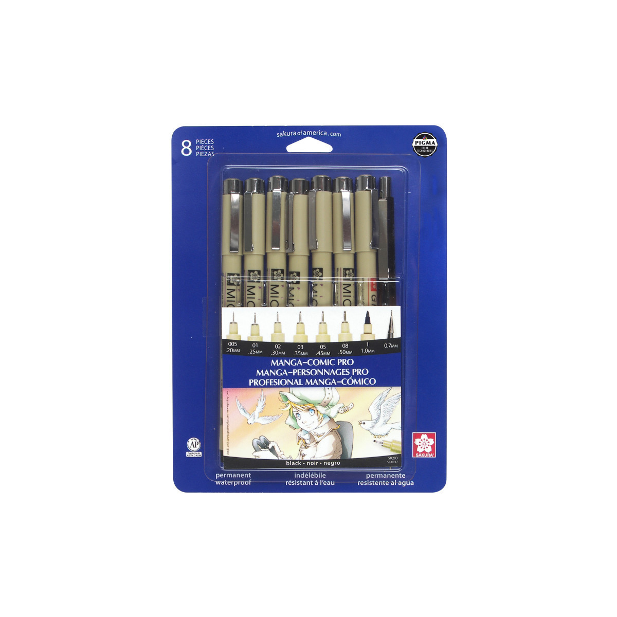 Pigma ink is permanent, waterproof, chemical proof, and fade resistant on paper. From all-in-one beginner kits like the Pigma Sensei to professional pens like Manga-Comic Pro and Pigma Professional brushes, archival Pigma ink has been trusted by manga and comic artists for over 25 years. Set includes 7 Micron Pens in sizes .005, .01, .02, .03, .05, .08, 1mm, and .07mm Mechanical Pencil.