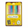 - Soufflé pens color on plastic, coated paper, acetate, vellum and glass