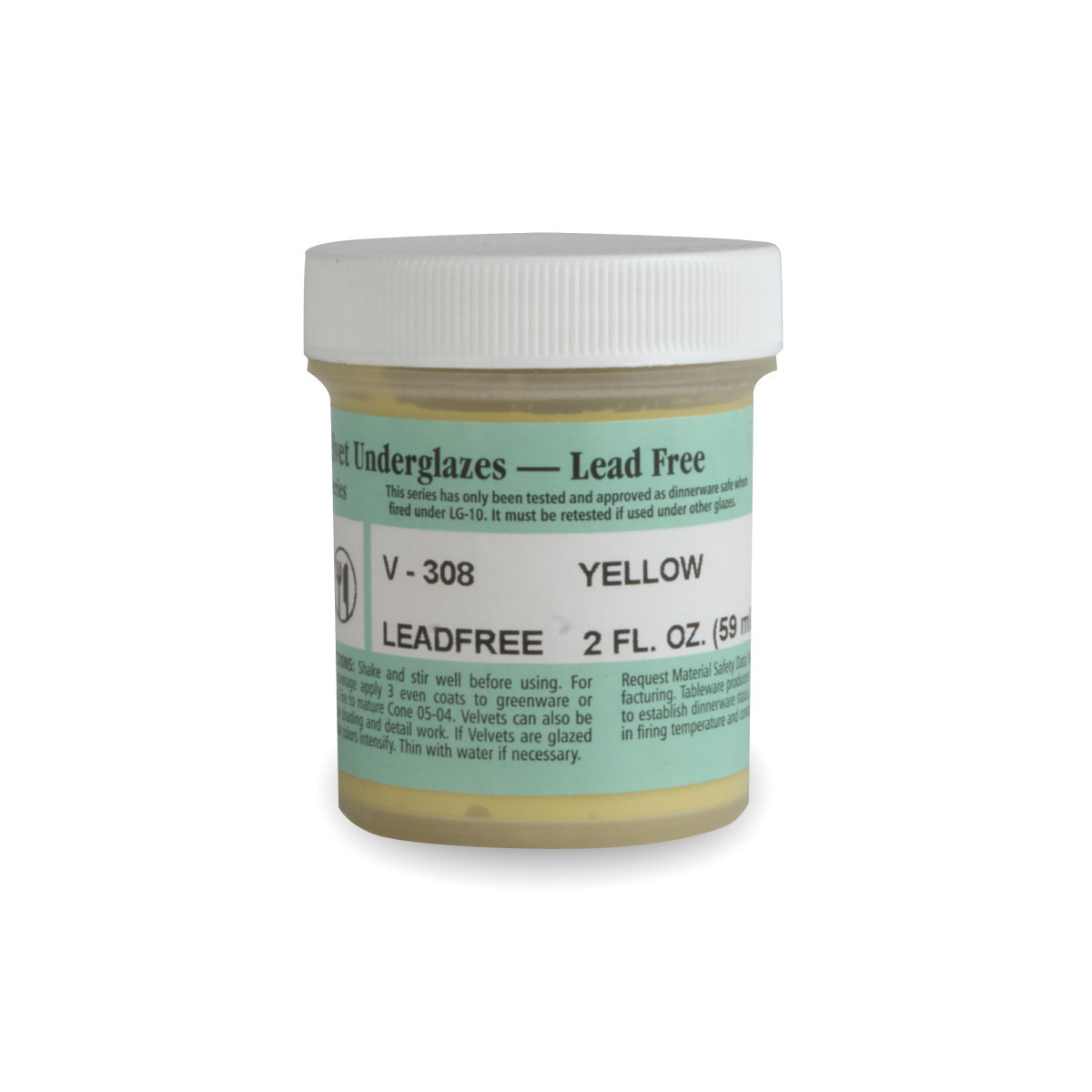 Achieve smooth, vibrant color on ceramic pieces with AMACO Velvet Underglaze. This 2 oz jar of yellow underglaze offers rich, opaque coverage that can be applied to greenware, bisque, or mature clay bodies. The creamy consistency makes it easy to brush, sponge, or stencil on surfaces for detailed designs or all-over color.