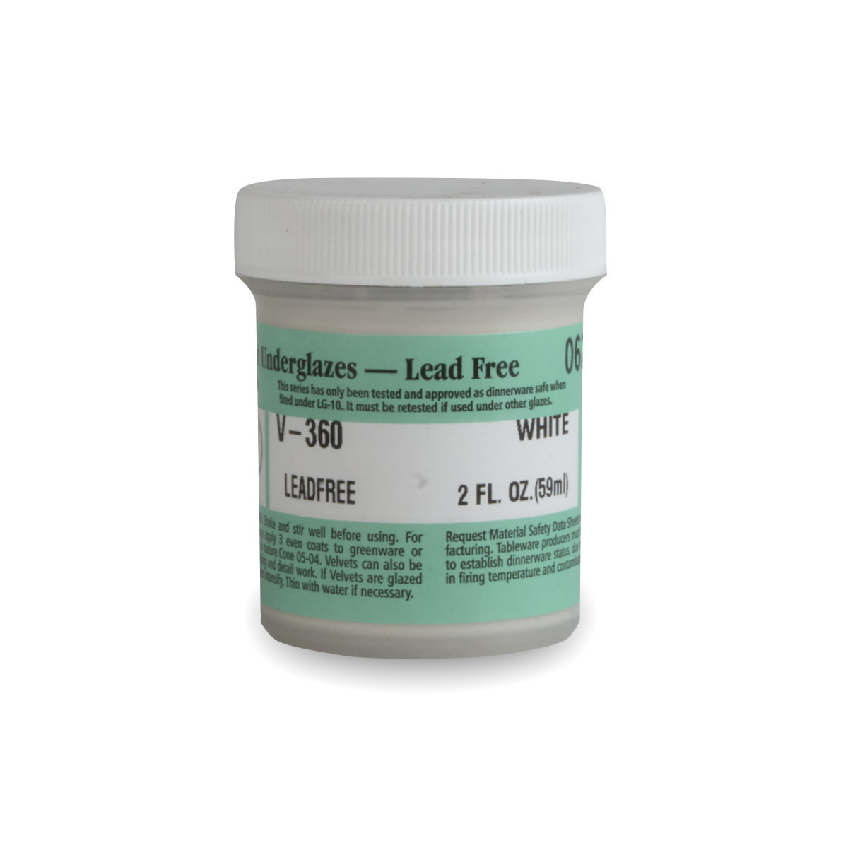 Achieve smooth, vibrant color on ceramic pieces with AMACO Velvet Underglaze. This 2 oz jar of white underglaze offers rich, opaque coverage that can be applied to greenware, bisque, or mature clay bodies. The creamy consistency makes it easy to brush, sponge, or stencil on surfaces for detailed designs or all-over color.