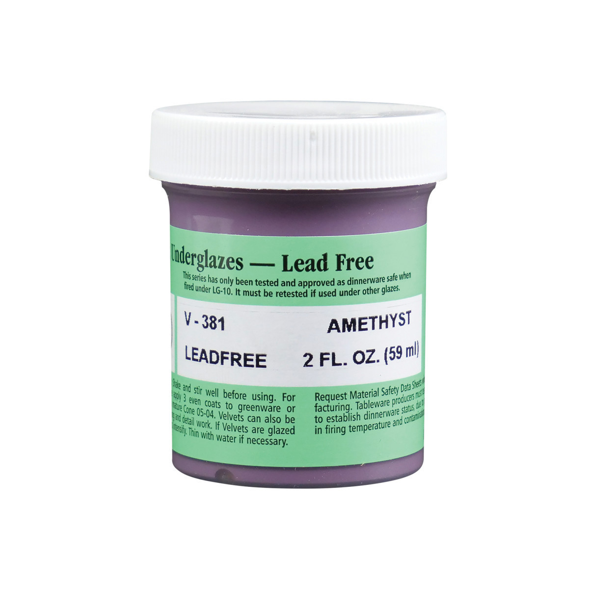 Achieve smooth, vibrant color on ceramic pieces with AMACO Velvet Underglaze. This 2 oz jar of amethyst underglaze offers rich, opaque coverage that can be applied to greenware, bisque, or mature clay bodies. The creamy consistency makes it easy to brush, sponge, or stencil on surfaces for detailed designs or all-over color.