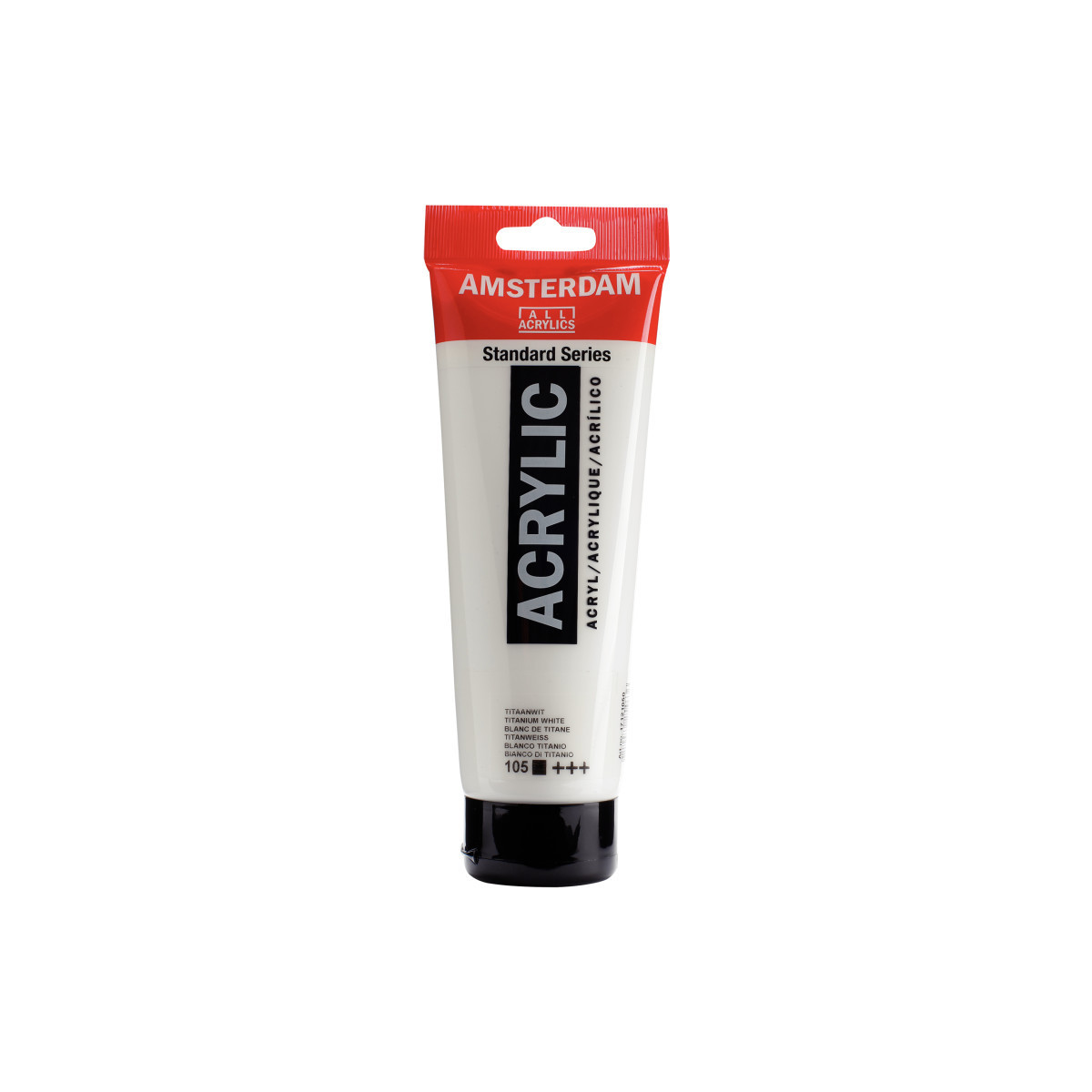 Amsterdam Standard Acrylic Paint Tube, 250 mL, Titanium White 105