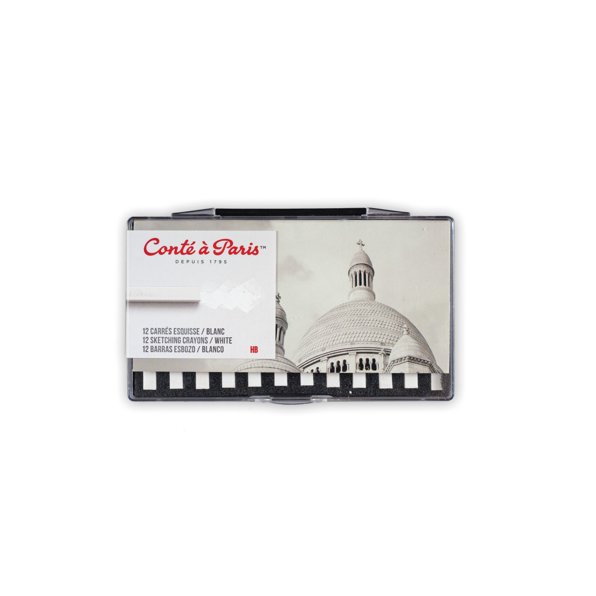 Create expressive, precise sketches with Conté à Paris Carrés Esquisse Sketching Pastel Crayons, White HB, Set of 12. These square sketching crayons feature a slightly softer lead than Conté pencils, allowing smooth, even coverage for both detailed and tonal work. The White HB variation is perfect for light accents, highlights, or drawing on toned and black papers for striking contrast. Ideal for preliminary sketches, mixed-media studies, or finished monochromatic compositions, these crayons blend easily with other colors to adjust values or refine highlights. The HB grade offers the perfect balance between hardness and softness for controlled, responsive mark-making.