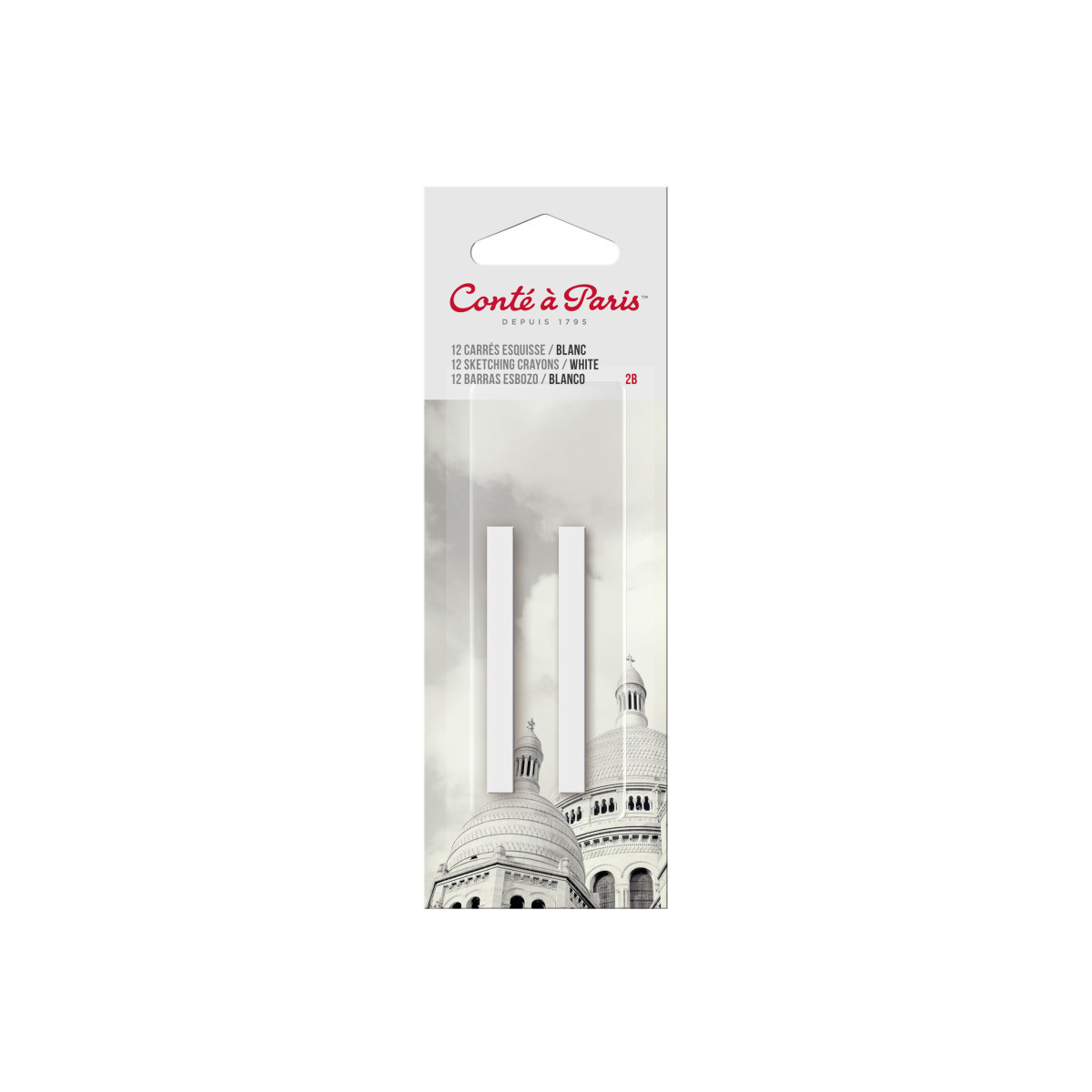Bring soft, luminous highlights to your artwork with Conté à Paris Carrés Esquisse Sketching Pastel Crayons, White 2B, Pack of 2. These square sketching crayons feature a slightly softer composition than Conté pencils, producing velvety marks and smooth tonal transitions. The White 2B grade offers gentle blending capabilities ideal for light accents, negative drawing, and sketching on toned or dark papers. Perfect for figure drawing, studies, and expressive mixed-media work, these crayons pair beautifully with Red, Bistre, and Black Conté tones. The B grade provides soft laydown for subtle shading and delicate gradations in fine art applications.