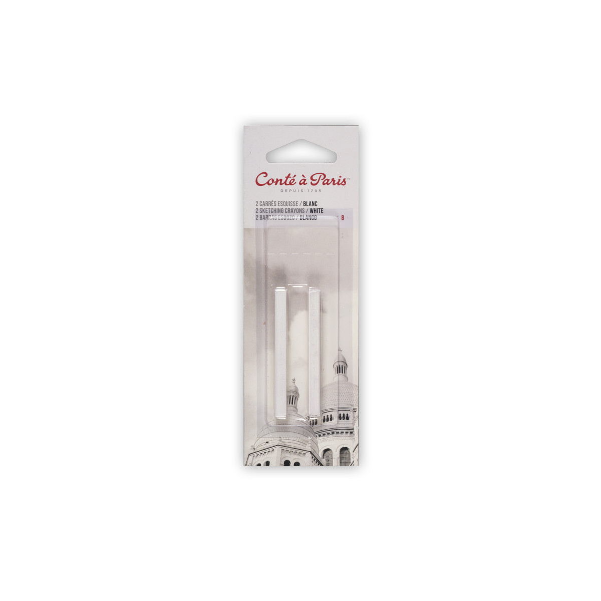 Bring soft, luminous highlights to your artwork with Conté à Paris Carrés Esquisse Sketching Pastel Crayons, White B, Pack of 2. These square sketching crayons feature a slightly softer composition than Conté pencils, producing velvety marks and smooth tonal transitions. The White B grade offers gentle blending capabilities ideal for light accents, negative drawing, and sketching on toned or dark papers. Perfect for figure drawing, studies, and expressive mixed-media work, these crayons pair beautifully with Red, Bistre, and Black Conté tones. The B grade provides soft laydown for subtle shading and delicate gradations in fine art applications.
