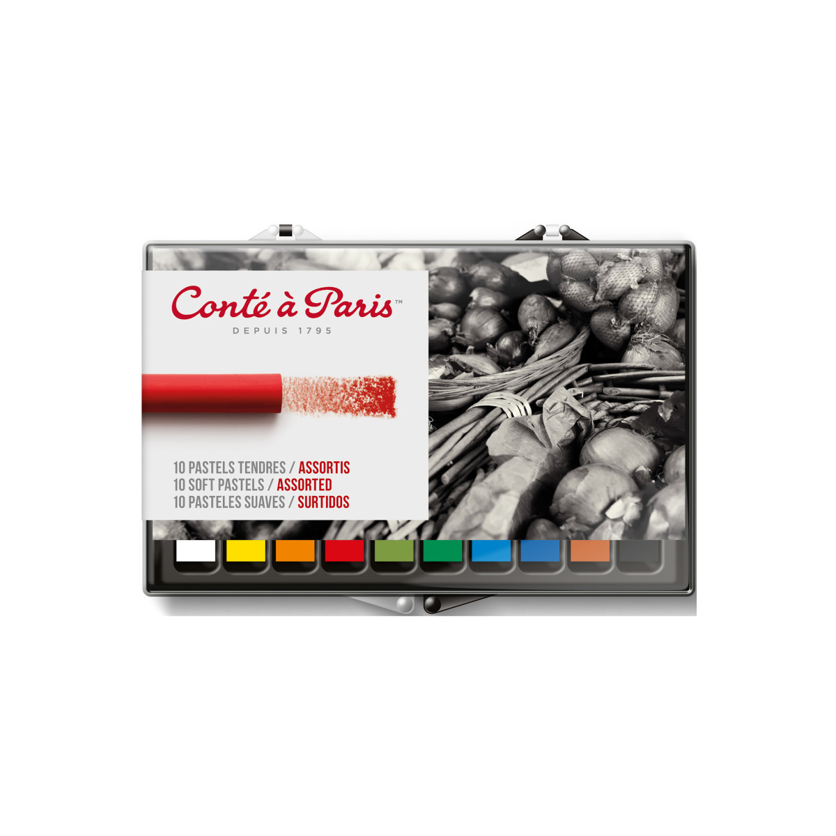 Create luminous color and expressive texture with Conté à Paris Soft Pastels, Assorted Colors, Set of 10. This versatile set includes a carefully curated range of richly pigmented hues ideal for sketching, blending, and layering. The buttery texture allows for smooth application and exceptional color mixing, making them perfect for portraits, landscapes, and still-life compositions. Each pastel stick produces vibrant coverage on paper, board, or canvas, while the soft formula enables easy blending and subtle gradation of tone. Whether for professional artists or students exploring color theory, these pastels offer exceptional handling and performance. Crafted with precision, Conté à Paris continues its tradition of excellence in fine art materials since 1795.