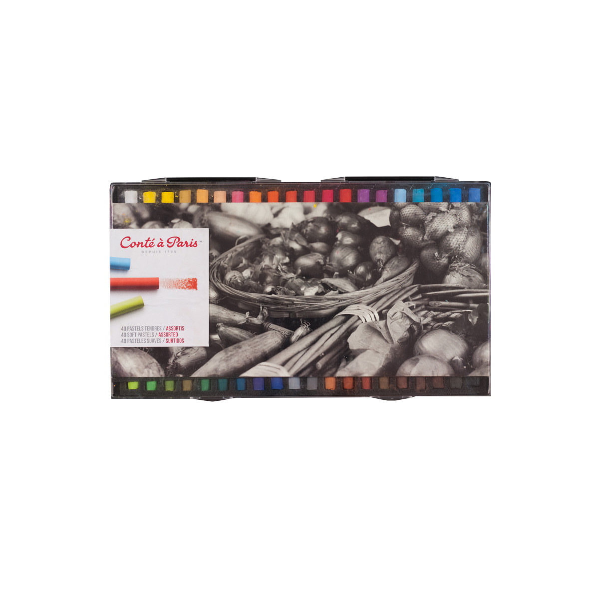 Create luminous color and expressive texture with Conté à Paris Soft Pastels, Assorted Colors, Set of 40. This versatile set includes a carefully curated range of richly pigmented hues ideal for sketching, blending, and layering. The buttery texture allows for smooth application and exceptional color mixing, making them perfect for portraits, landscapes, and still-life compositions. Each pastel stick produces vibrant coverage on paper, board, or canvas, while the soft formula enables easy blending and subtle gradation of tone. Whether for professional artists or students exploring color theory, these pastels offer exceptional handling and performance. Crafted with precision, Conté à Paris continues its tradition of excellence in fine art materials since 1795.