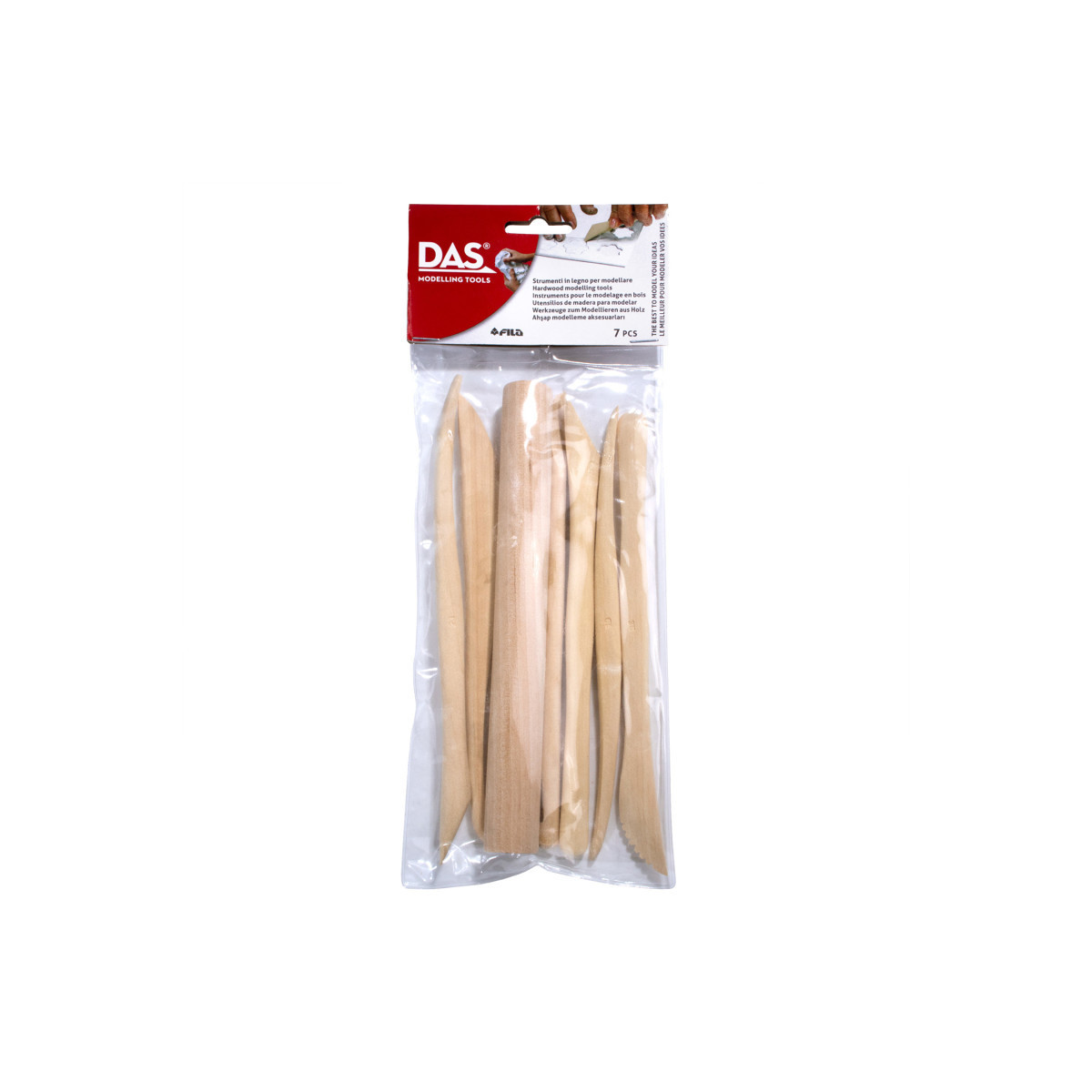 Shape, carve, and refine your creations with the DAS® Wood Clay Modeling Tools, Set of 7. Crafted from smooth, durable wood, each tool features a unique double-ended design to provide multiple shaping and detailing options. Ideal for use with air-dry, polymer, and ceramic clays, these tools allow for precise sculpting, texturing, and trimming. Their ergonomic, lightweight design ensures comfortable control, whether working on fine details or larger forms. Perfect for classrooms, studios, and professional artists, this versatile set is an essential addition to any sculptor’s toolkit. Designed for durability and versatility, DAS® modeling tools deliver quality craftsmanship trusted by artists, educators, and students worldwide.