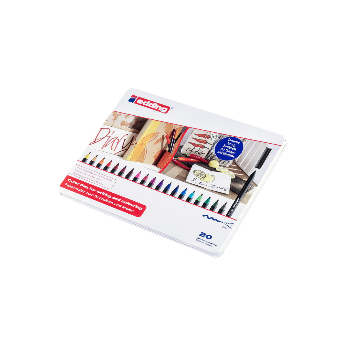 Experience smooth, vibrant color with edding 1300 Series Color Markers, Medium, Assorted Colors, Set of 20. These premium fiber-tip markers feature rich, water-based ink that produces brilliant, uniform lines ideal for drawing, coloring, and lettering. The medium bullet tip offers precise control for outlines while covering large areas with ease, making them perfect for both students and professional artists. Their quick-drying, low-odor ink resists smudging and bleeding on most paper types. This versatile 10-color set includes a balanced range of classic tones for art, design, or classroom projects. With their durable tips and consistent ink flow, edding 1300 Series markers deliver professional performance and lasting quality in every stroke.
