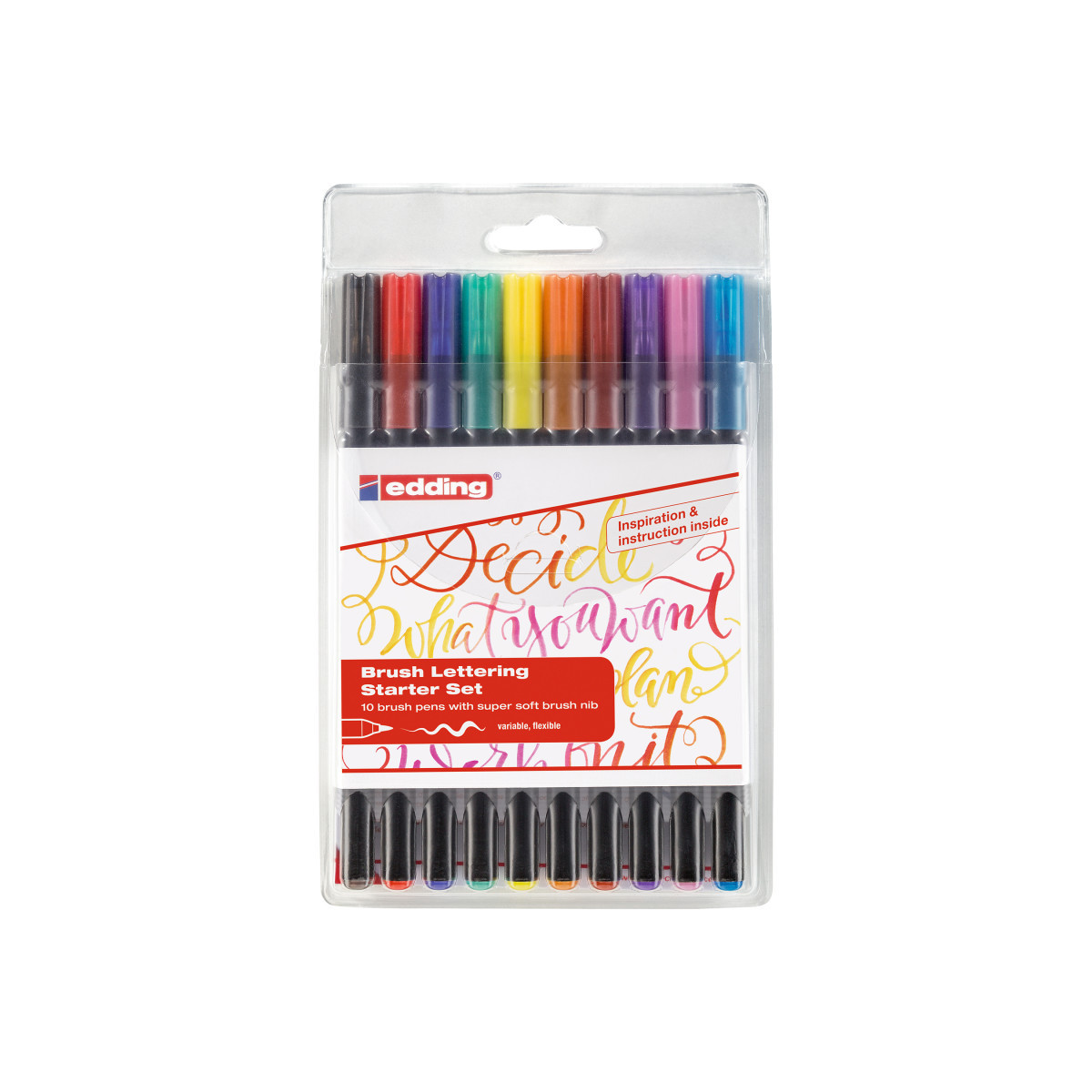 Master expressive lettering and vibrant illustration with edding 1340 Series Brush Pen Lettering Starter Set, Assorted Colors, Set of 10. This premium collection features flexible brush tips that create fine, medium, or broad strokes with ease, perfect for hand lettering, modern calligraphy, and colorful sketches. The water-based ink delivers brilliant, blendable color that dries quickly and resists smudging on most papers. Ideal for beginners and experienced artists alike, this starter set includes 10 vivid shades carefully selected for creative versatility. Each pen provides smooth, consistent ink flow and excellent tip response for controlled, expressive results. Designed for both classrooms and studios, edding brush pens combine precision, comfort, and professional-grade performance.