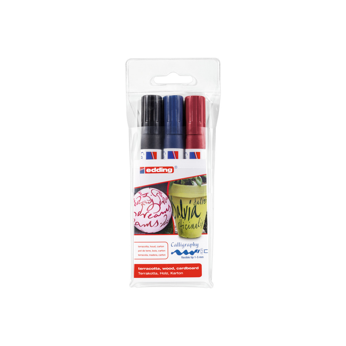 Create expressive, elegant lettering with edding 1455 Series Calligraphy Markers, Flexible Tip, Assorted Colors, Set of 3. Designed for precision and control, these professional-quality markers feature flexible chisel tips that adapt easily to hand pressure, producing a range of line widths for both classic and modern calligraphy styles. The quick-drying, water-based pigment ink delivers smooth, even coverage and rich color without smudging or bleeding through most papers. Perfect for journaling, invitations, greeting cards, and decorative artwork, this set includes three essential calligraphy colors ideal for creative expression. Whether you’re a beginner or an experienced artist, edding calligraphy markers provide consistent ink flow and professional-grade performance you can trust.