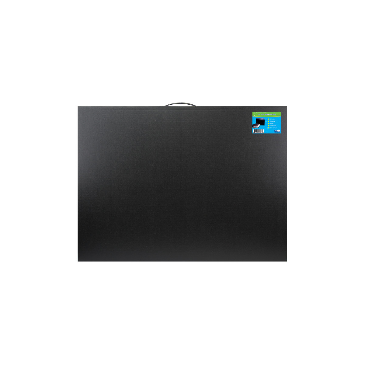 Large sturdy lightweight black corrugated portfolio cases are a great way to showcase your work and tell your story by storing sketches, paintings, photography, and drawings. Portfolios are useful to keep artwork protected and easy to transport because of the sturdy plastic handle. Includes a front flap that closes securely to keep the artwork from falling out. Perforation down the center to simply slide the prints in the portfolio, easily see what’s inside, and a great way to keep your work organized. The black outside surface has a smooth matte finish, can easily be personalized to create a collection that stands out, and features a water resistant coating. 23” x 31” x 1.5”