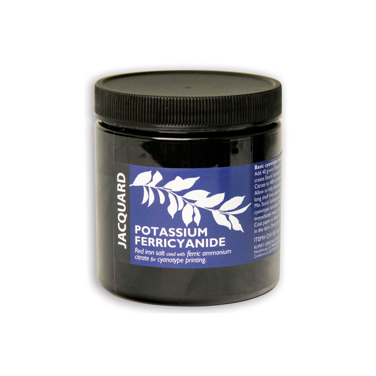 Create beautiful, archival blueprints with Jacquard Potassium Ferricyanide for Cyanotype Printing, 8 oz. This light-sensitive chemical compound is one of the two essential components in the classic cyanotype process, used to produce deep Prussian blue photographic prints on paper, fabric, or other porous surfaces. When combined with ferric ammonium citrate, it forms a UV-reactive solution that develops in sunlight and fixes with water, requiring no darkroom. Ideal for artists, photographers, and educators, this 8 oz package provides ample material for creative and experimental printing. Jacquard Potassium Ferricyanide is trusted for consistent results, vibrant color, and high purity, making it a go-to choice for traditional blueprinting, alternative photography, and scientific art exploration.