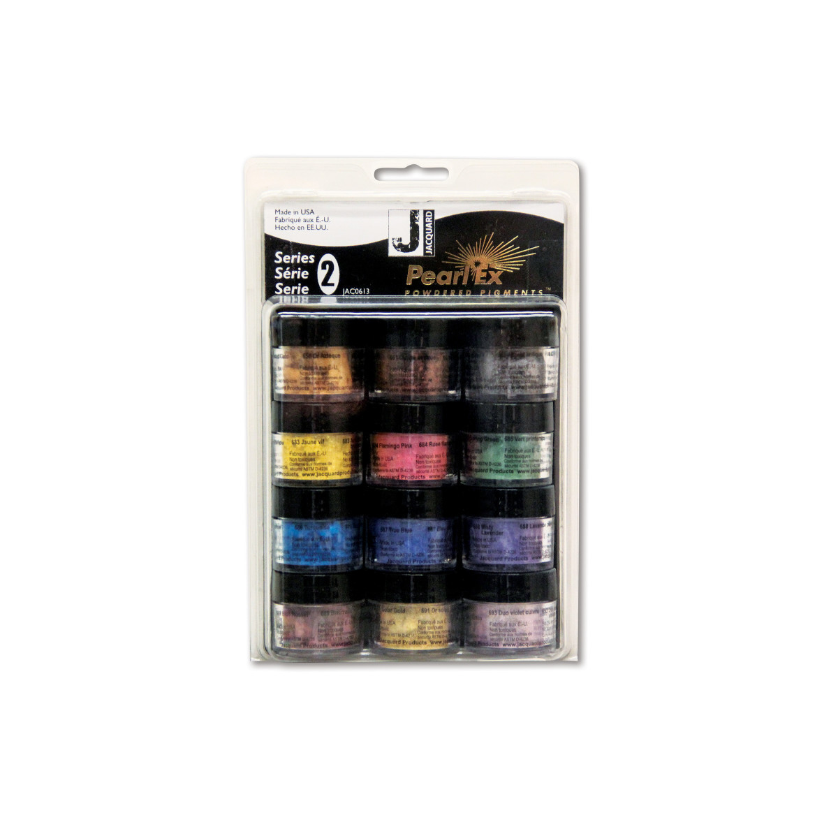 Expand your creative palette with Jacquard Pearl-Ex Pigments, Series 2, Set of 12 (3 g Jars). These fine mica-based powders offer stunning pearlescent, metallic, and iridescent finishes for virtually any surface—paper, fabric, polymer clay, glass, resin, wood, and more. Series 2 features 12 unique shades that complement Series 1, adding deeper tones, subtle shimmers, and interference colors ideal for layering and mixed-media effects. The pigments can be mixed with acrylics, oils, varnishes, glazes, epoxy, or gum arabic to create custom paints and coatings. Non-toxic, lightfast, and versatile, Jacquard Pearl-Ex Pigments bring professional-grade luster and brilliance to fine art, crafts, and design projects in studios, classrooms, and creative workshops alike.