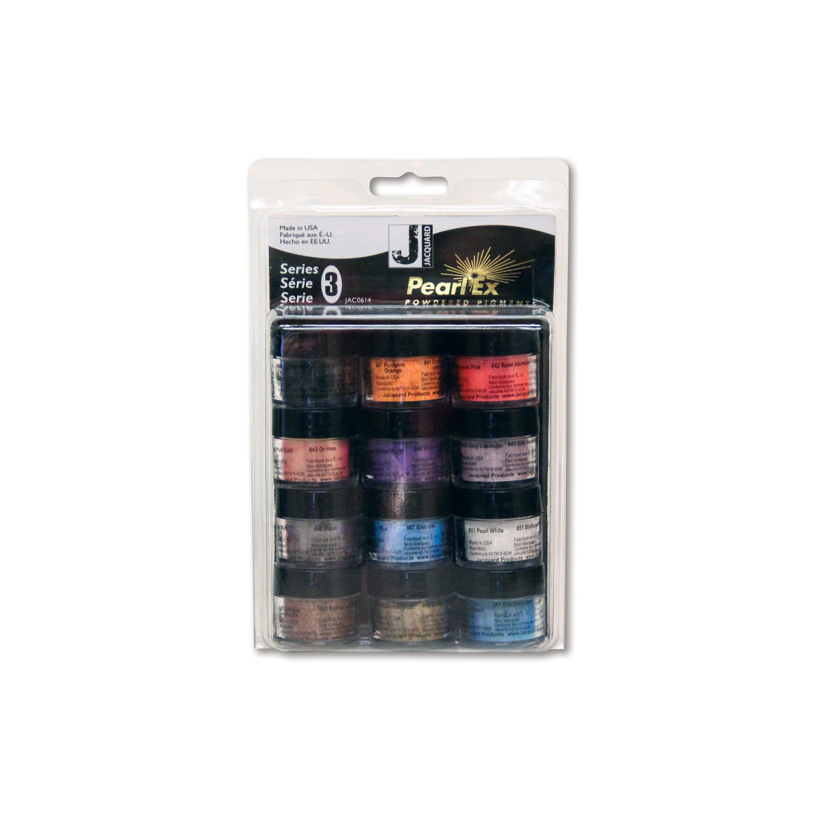 Discover even more creative depth with Jacquard Pearl-Ex Pigments, Series 3, Set of 12 (3 g Jars). These professional-grade, mica-based powders deliver luminous metallic and pearlescent effects that enhance fine art, craft, and design projects. Series 3 expands the Pearl-Ex range with a striking selection of intense hues, interference shades, and specialty tones formulated for maximum brilliance and versatility. The pigments mix effortlessly with acrylics, oils, resins, glazes, varnishes, or gum arabic to produce custom paints and finishes that adhere to paper, fabric, polymer clay, glass, metal, and wood. Non-toxic, lightfast, and fade-resistant, Jacquard Pearl-Ex Pigments provide artists and makers with exceptional color control and long-lasting shimmer across all creative disciplines.