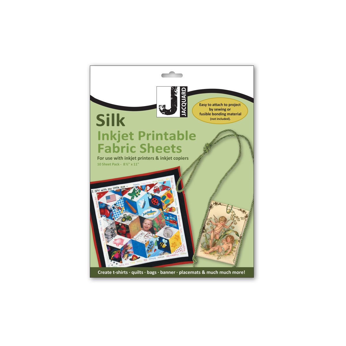 Bring digital artwork and photographs to life on luxurious silk with Jacquard Silk Inkjet Printable Fabric Sheets, 8.5" x 11", Pack of 10. Made from 100% Habotai silk, these printable sheets are specially coated for inkjet compatibility, allowing you to reproduce detailed images with rich color and natural sheen. Each sheet is backed with a removable paper liner for easy printing and handling. Once printed, simply peel away the backing to reveal soft, genuine silk fabric perfect for quilting, collage, mixed media, or fine art applications. Ideal for artists, crafters, and educators, Jacquard Silk Inkjet Fabric Sheets combine modern printing technology with timeless textile beauty, giving you professional-quality results right from your home or studio.