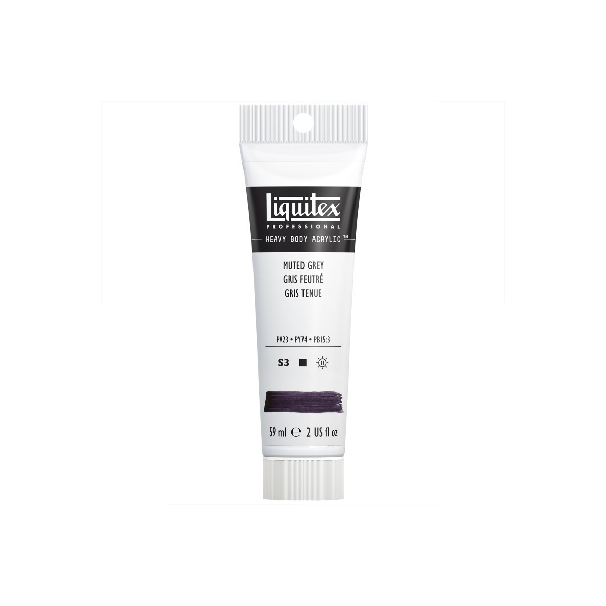 An opaque soft, warm grey with red-purple tones, made with a blend of pigments - phthalocyanine blue (blue green shade), dioxazine purple and arylide yellow. Unlock your potential with thick, high viscosity, pigment-rich professional acrylic color. Formulated with a high concentration of lightfast artist-quality pigment and a satin finish, Heavy Body Acrylic gives you permanent color with crisp brush strokes and bold knife marks. Never too slippery, or too sticky, take your creativity to new peaks with satisfyingly rich color, perfect for impasto, blending and all kinds of pro-painting techniques. The unique tones of the Muted Collection, have a muted, subtle character and the colors are more of a tonal palette than a mixing palette.