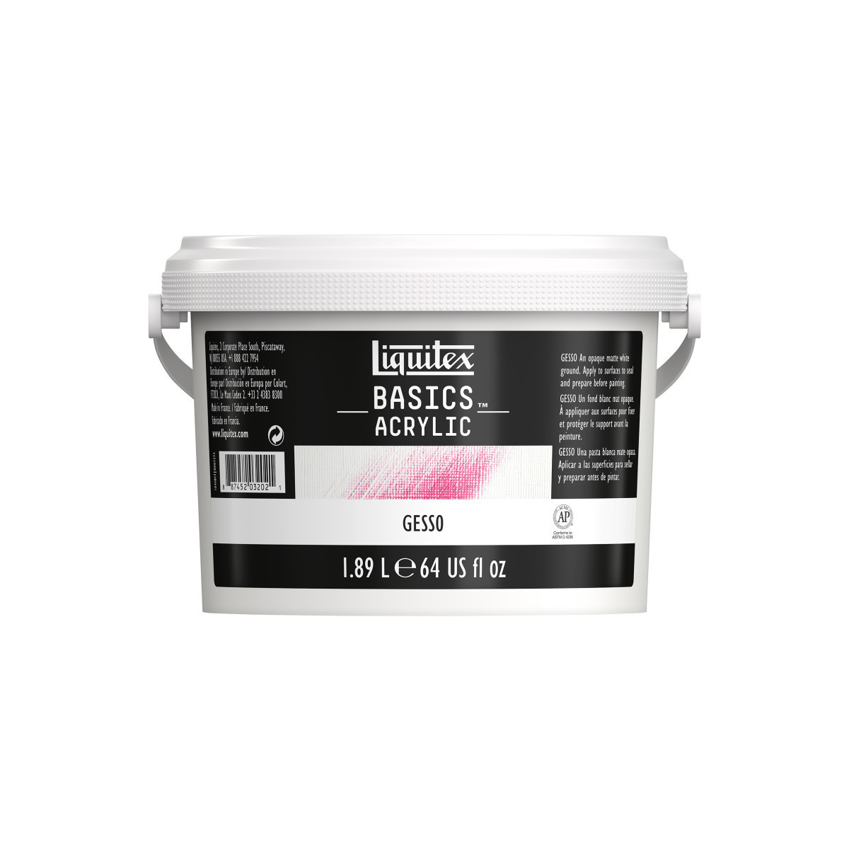 Prepare your surfaces for painting with Liquitex BASICS Gesso Surface Prep Medium, 0.5 gal bucket, White. This high-quality acrylic primer creates a smooth, even, and slightly textured ground that improves paint adhesion and color vibrancy. Ideal for use on canvas, wood, paper, and board, it ensures your surface is properly sealed and ready to accept acrylic, oil, or dry media. The non-yellowing, titanium white formula provides excellent coverage and flexibility, drying quickly to a matte finish that enhances brush control. Perfect for students, artists, and educators, Liquitex BASICS Gesso offers professional-grade performance at an affordable price, ideal for classroom preparation, art projects, or studio practice.