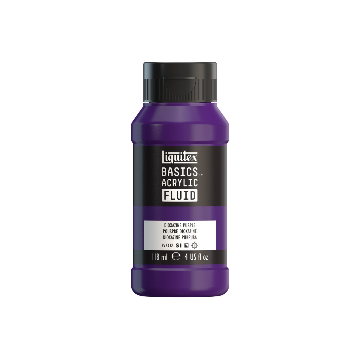 A vivid mid-shade purple which is semi-opaque. It is made from a coal tar pigment and when undiluted, can be used as a deep black. Enjoy smooth, pourable color with Liquitex BASICS Acrylic Fluid, 118 mL Bottle. Formulated with the same high-quality pigments as Liquitex BASICS Acrylics, this versatile fluid paint offers excellent coverage, color strength, and permanence in a low-viscosity format. It’s ideal for fine art, craft, and mixed-media techniques such as pouring, dripping, staining, and detail work. The ready-to-use consistency eliminates the need for dilution while maintaining brilliant, even color. Perfect for use on canvas, wood, paper, or fabric, it dries to a flexible, water-resistant finish with rich saturation and subtle sheen.