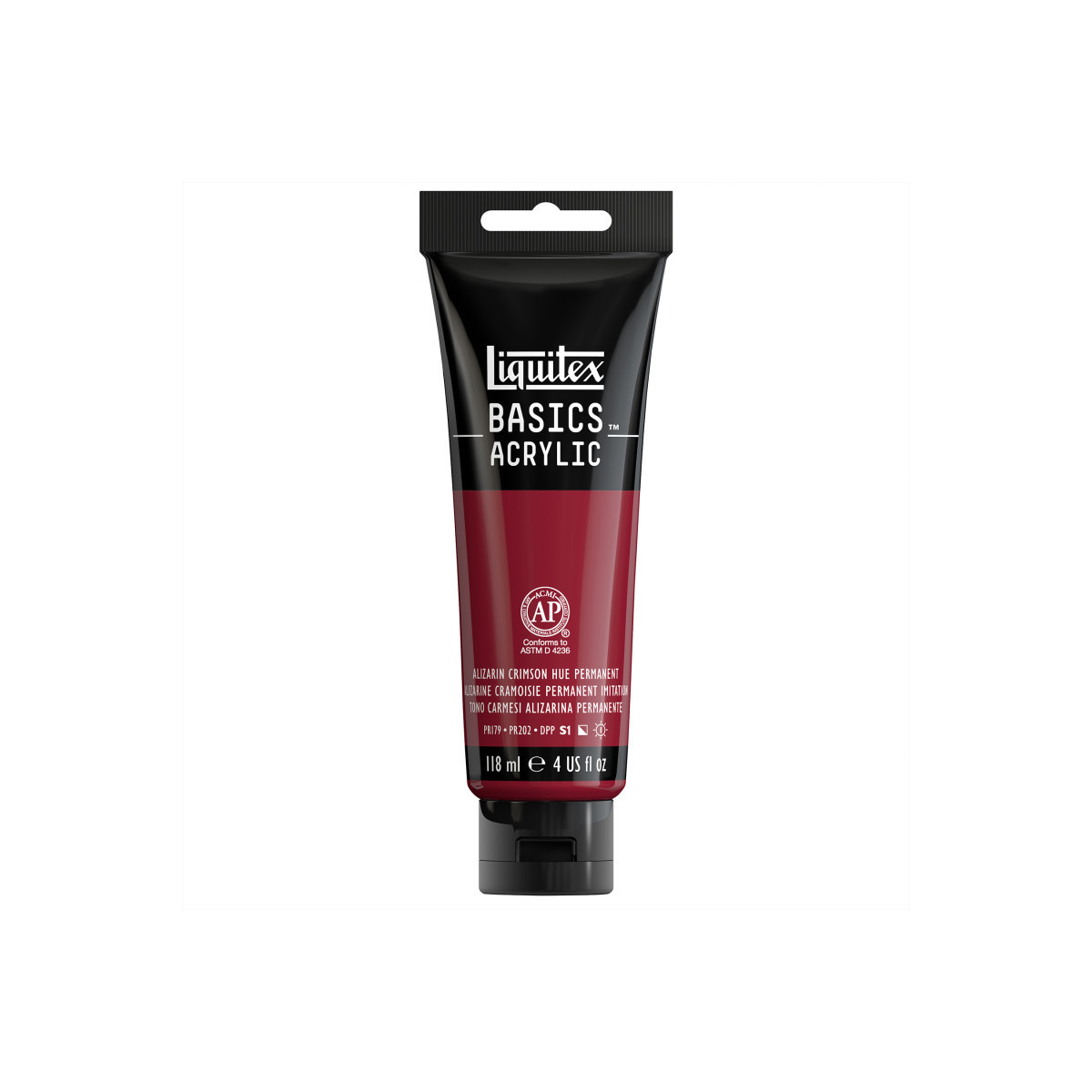 A semi-opaque vivid red with a blue undertone. This is a mixed pigment hue - a recreation of true alizarin crimson pigment, which doesn’t offer the required lightfastness for artists. Alizarin crimson was first used as a dye obtained from the roots of the madder plant by the ancient Egyptians. Whether you’re a beginner on a budget, an experienced artist doing underpainting or sketching, or a creative professional doing color scoping and exploration, Liquitex Basics Acrylic has you covered. Formulated with the same lightfast, fine art pigments used in our professional range (just with a lighter pigment load), Basics Acrylic delivers a lightfast, medium viscosity experience that sacrifices nothing. It’s the perfect balance of quality, versatility, and economy.