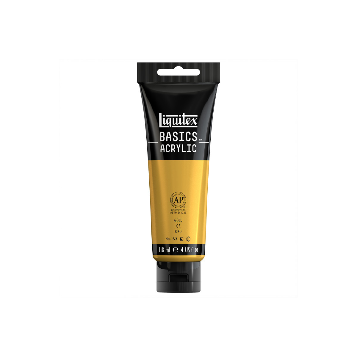 A metallic warm gold. Semi-opaque, the color gives an iridescent lustre resembling that of burnished gold metal. Whether you’re a beginner on a budget, an experienced artist doing underpainting or sketching, or a creative professional doing color scoping and exploration, Liquitex Basics Acrylic has you covered. Formulated with the same lightfast, fine art pigments used in our professional range (just with a lighter pigment load), Basics Acrylic delivers a lightfast, medium viscosity experience that sacrifices nothing. It’s the perfect balance of quality, versatility, and economy. So, what are you waiting for? Jump straight in, go for it, and see what happens. Experience The Everyday Acrylic.