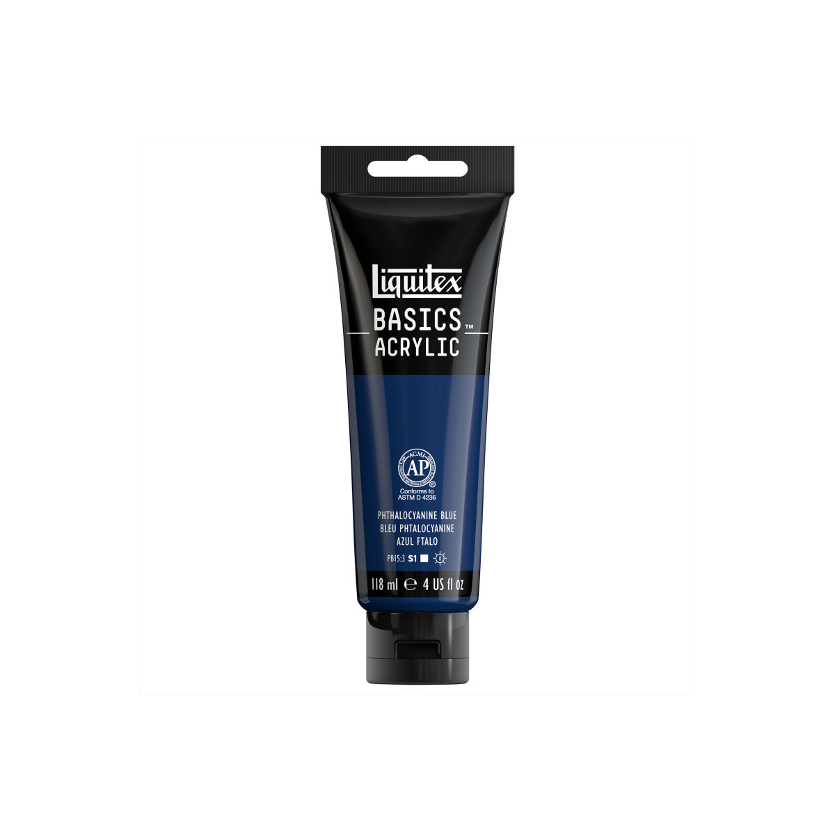 An intense deep blue single pigment color with a green undertone. It's made from the modern synthetic pigment phthalocyanine which was introduced in the 1930s and has a high tinting strength. Whether you’re a beginner on a budget, an experienced artist doing underpainting or sketching, or a creative professional doing color scoping and exploration, Liquitex Basics Acrylic has you covered. Formulated with the same lightfast, fine art pigments used in our professional range (just with a lighter pigment load), Basics Acrylic delivers a lightfast, medium viscosity experience that sacrifices nothing. It’s the perfect balance of quality, versatility, and economy. So, what are you waiting for? Jump straight in, go for it, and see what happens. Experience The Everyday Acrylic.