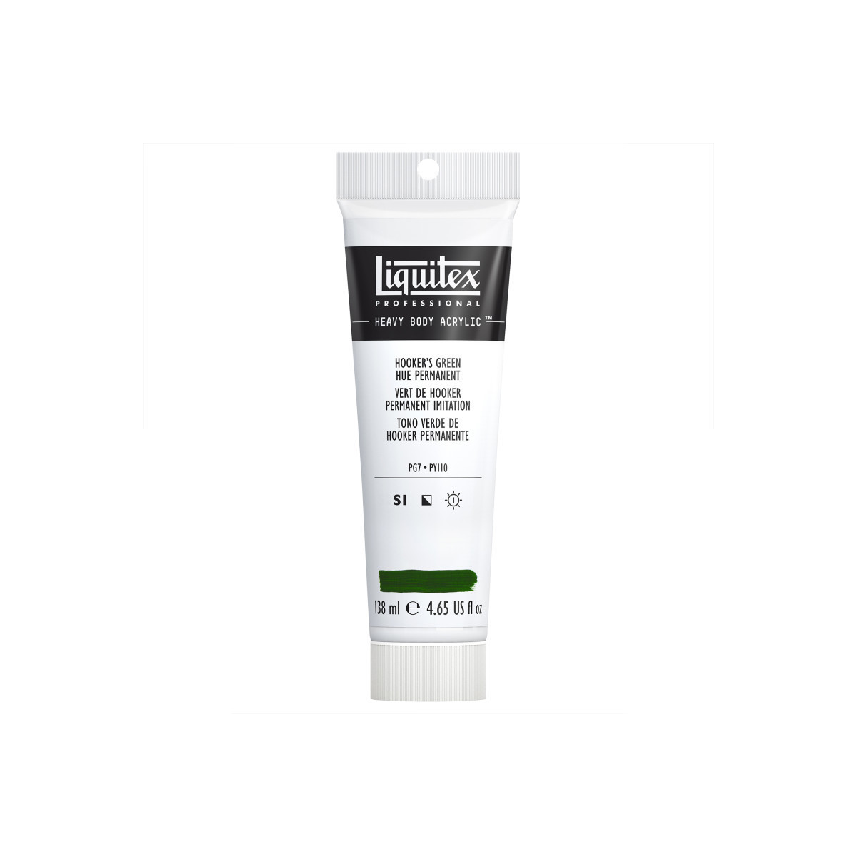 A rich dark green semi-opaque color with a yellow tint. A mixed pigment hue, the original Hooker's green pigment was created by 19th century English botanist and illustrator William J Hooker. Unlock your potential with thick, high viscosity, pigment-rich professional acrylic color. Formulated with a high concentration of lightfast artist-quality pigment and a satin finish, Heavy Body Acrylic gives you permanent color with crisp brush strokes and bold knife marks. Never too slippery, or too sticky, take your creativity to new peaks with satisfyingly rich color, perfect for impasto, blending and all kinds of pro painting techniques.