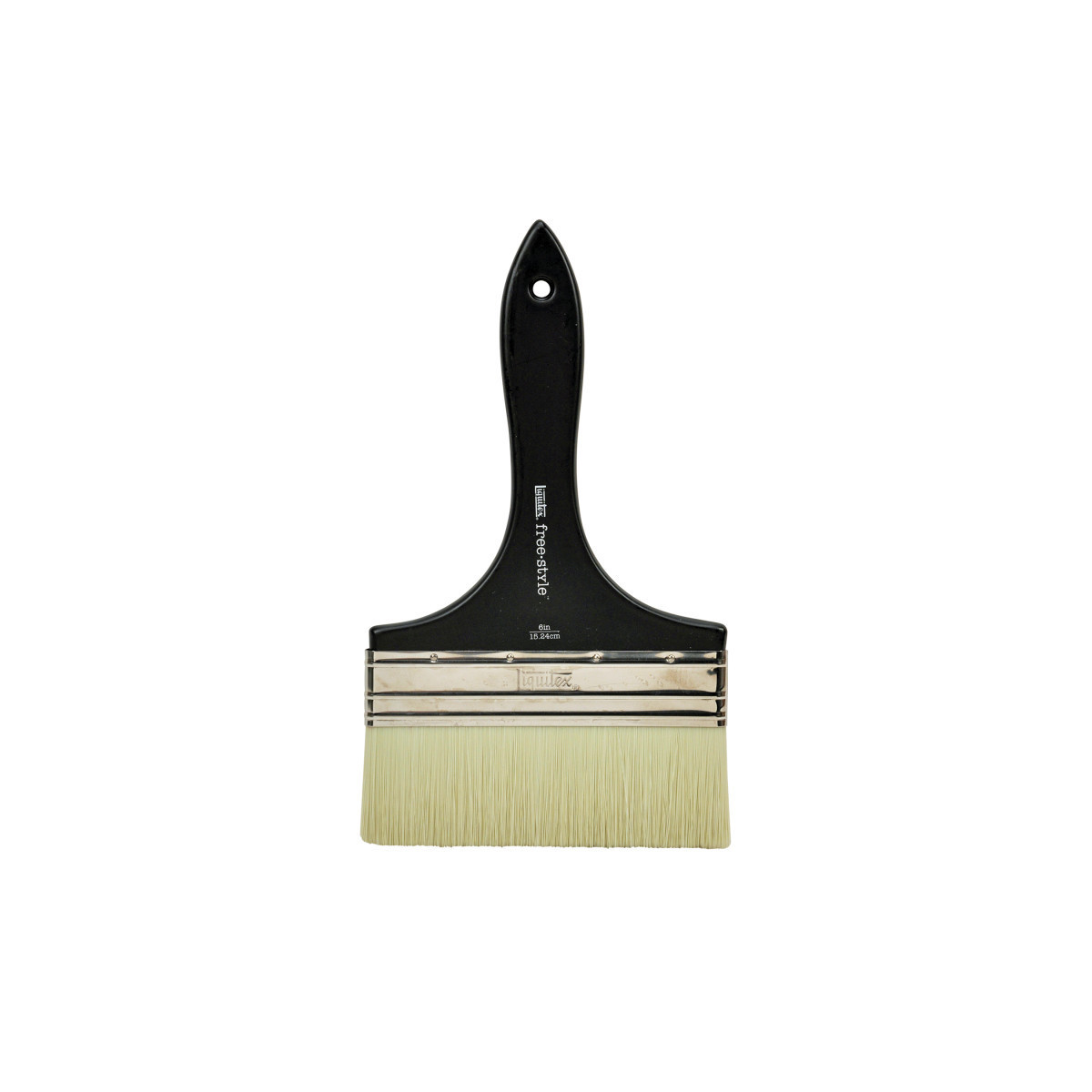 Achieve smooth, even coverage on large surfaces with the Liquitex Free-Style Large Scale Broad Flat/Varnish Short Handle Brush 6". Designed for professional artists and muralists, this high-capacity brush holds a generous amount of paint or varnish, delivering consistent, streak-free application across expansive areas. The durable synthetic bristles are flexible yet firm, ideal for use with acrylics, gels, and mediums. Its short, ergonomic handle provides superior control and comfort during extended painting sessions, while the stainless-steel ferrule ensures lasting durability. Perfect for priming, varnishing, or bold expressive strokes, the Liquitex Free-Style Broad Flat Brush offers precision and strength for both studio and large-scale projects.
