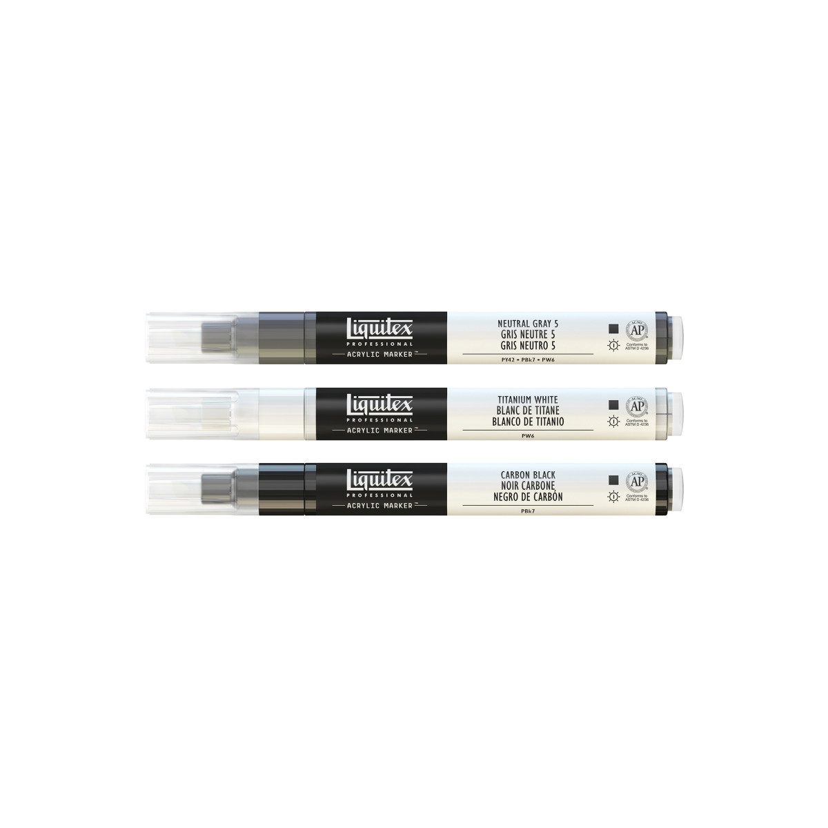 Liquitex Professional Acrylic Paint Markers, Monochrome Colors, 2 mm, Set of 3