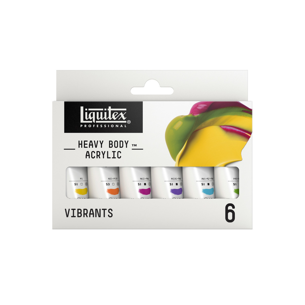 Vibrant Color: This set includes colors Vivid Lime Green, Medium Magenta, Light Blue Permanent, Yellow Light Hansa, Vivid Red Orange, and Brilliant Purple.