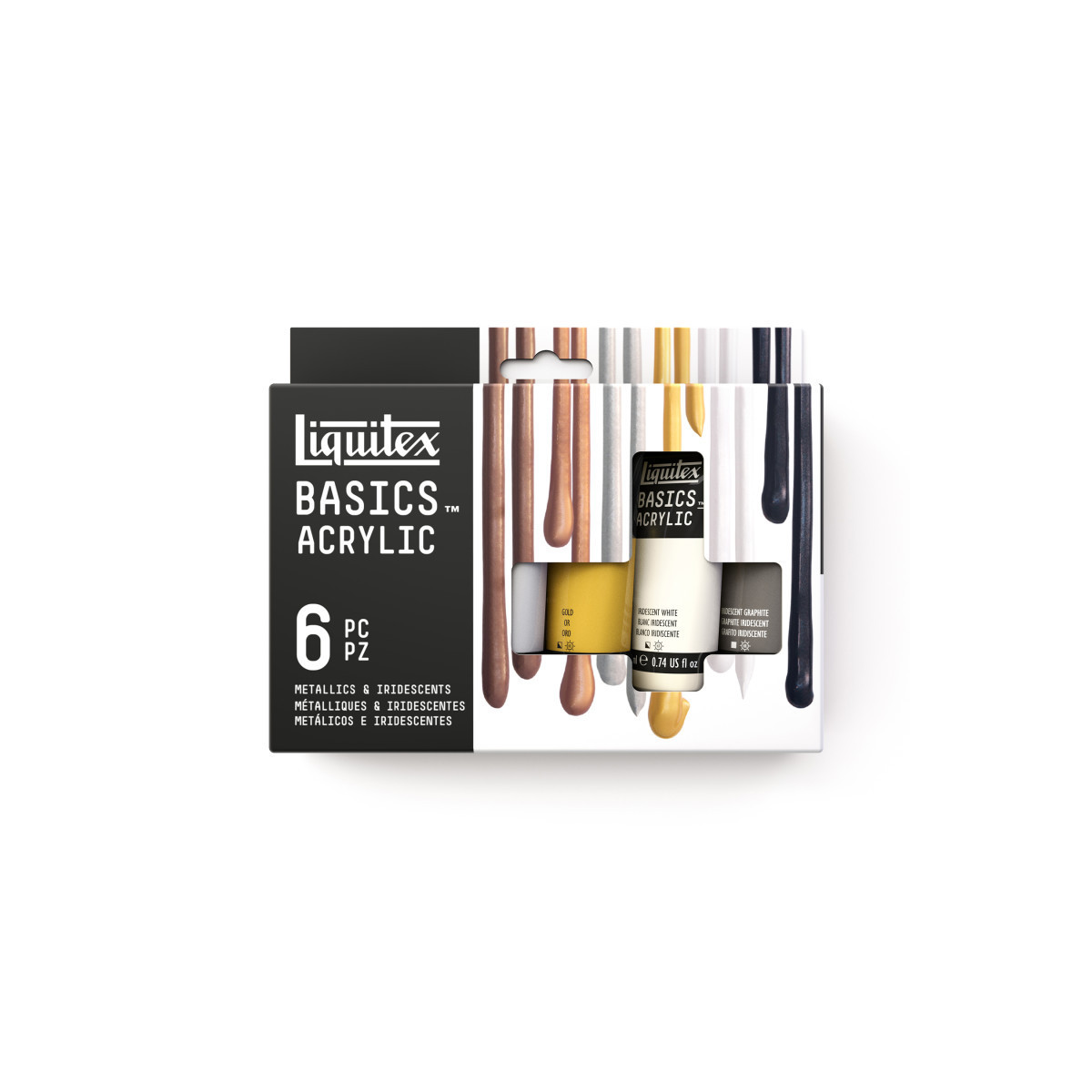 Lustrous, medium consistency acrylic paint made with fine art pigments. Basics is our high-grade, student-quality line, made for everyday use by all kinds of artists. Experiment with six metallic and iridescent colors, ranging from Gold to Iridescent Graphite. Create with confidence using Liquitex BASICS Acrylic Paint, a student-grade acrylic line offering exceptional quality at an accessible price. Formulated with artist-quality pigments, BASICS delivers rich, vibrant color, excellent coverage, and superior lightfastness across all hues. The medium-viscosity formula provides a smooth, buttery texture that’s easy to blend and layer on canvas, wood, paper, or fabric. Ideal for beginners, students, and educators, this versatile paint is water-based, non-toxic, and intermixable with all Liquitex professional colors and mediums. Once dry, it forms a flexible, durable surface that resists cracking and fading. Whether used for fine art, mixed media, or classroom projects, Liquitex BASICS Acrylic Paint offers consistent, reliable performance and long-lasting results trusted by artists worldwide.