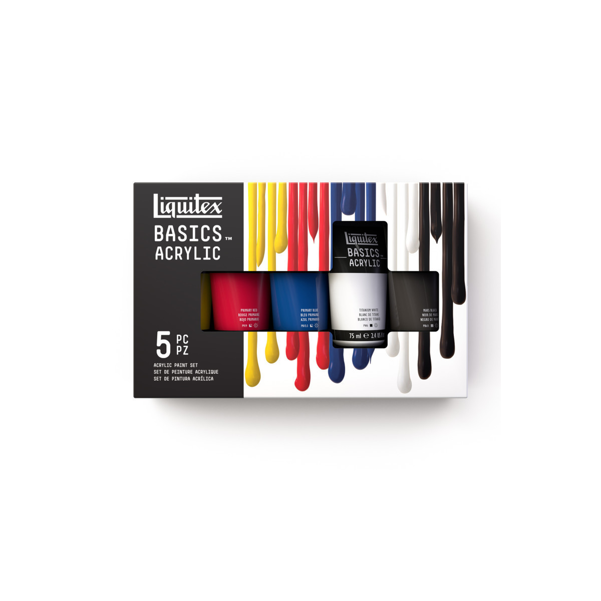 Featuring Liquitex BASICS medium consistency acrylic paint, this set contains five useful colors to help build your palette. Create with confidence using Liquitex BASICS Acrylic Paint, a student-grade acrylic line offering exceptional quality at an accessible price. Formulated with artist-quality pigments, BASICS delivers rich, vibrant color, excellent coverage, and superior lightfastness across all hues. The medium-viscosity formula provides a smooth, buttery texture that’s easy to blend and layer on canvas, wood, paper, or fabric. Ideal for beginners, students, and educators, this versatile paint is water-based, non-toxic, and intermixable with all Liquitex professional colors and mediums. Once dry, it forms a flexible, durable surface that resists cracking and fading.