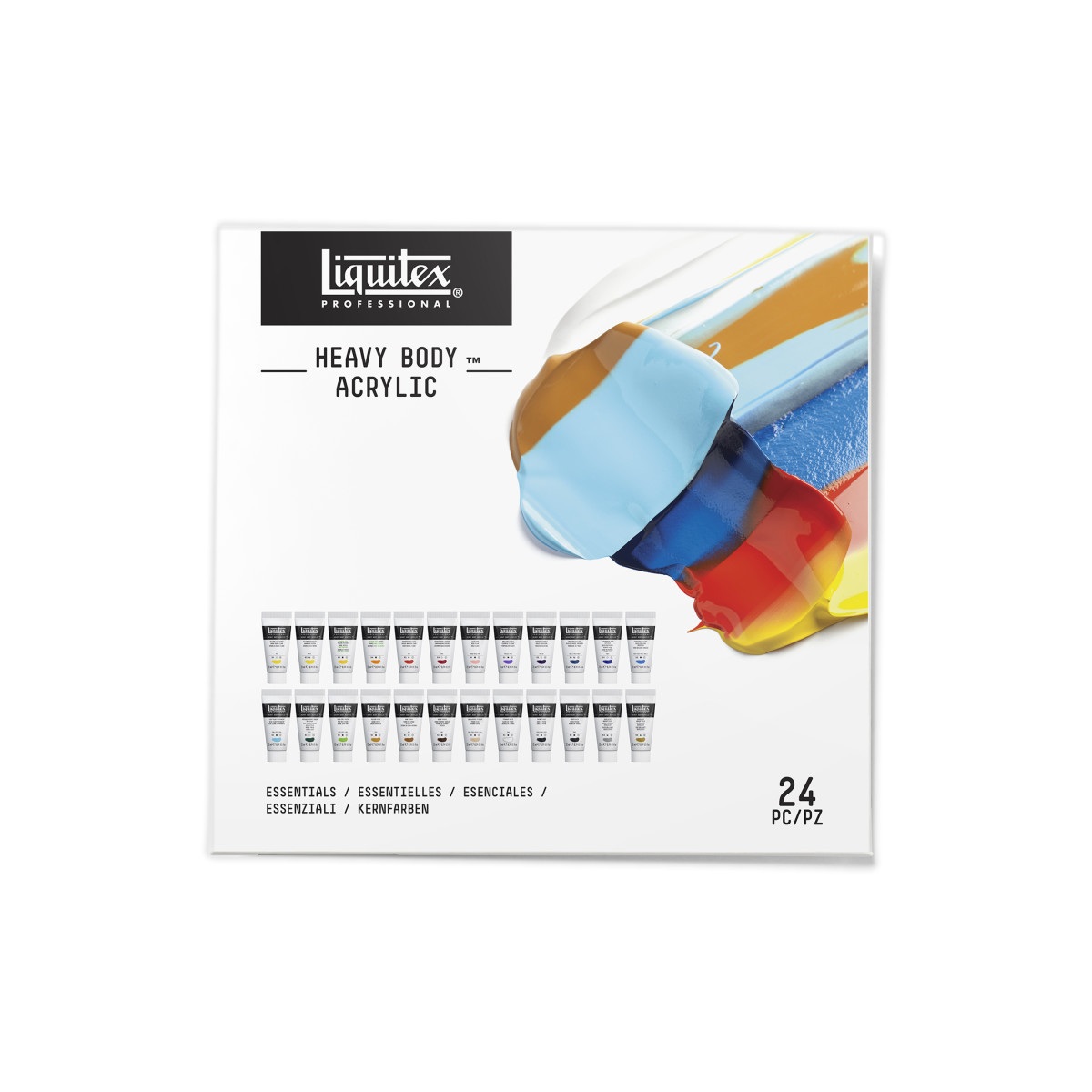 Heavy Body Acrylic is our highest viscosity professional acrylic. Broaden your palette with this collection of essential and favorite colors. Unlock your potential with thick, high viscosity, pigment-rich professional acrylic color. Known for its buttery consistency and intense color load, this professional-grade acrylic delivers outstanding coverage, permanence, and flexibility across a wide range of surfaces. The high-viscosity formula retains brushstrokes and knife marks beautifully, making it ideal for impasto, layering, and mixed-media techniques. Every color is made with lightfast, artist-quality pigments for consistent, archival results that won’t fade or crack over time. Perfect for fine artists, educators, and advanced students, Liquitex Professional Heavy Body Acrylic provides the tactile experience of oil paint with the fast-drying, water-based convenience of acrylics. Mix it with Liquitex mediums for limitless texture, transparency, and finish options. Colors Included: Yellow Light Hansa, Yellow Medium Azo, Cadmium Free Yellow Medium, Cadmium Free Orange, Naphthol Red Light, Quinacridone Crimson, Light Pink, Brilliant Purple, Dioxazine Purple, Ultramarine Blue Red Shade, Prussian Blue Hue, Cerulean Blue Hue, Light Blue Permanent, Phthalocyanine Green Blue Shade, Vivid Lime Green, Yellow Oxide, Raw Sienna, Burnt Umber, Unbleached Titanium, Titanium White, Payne's Gray, Ivory Black, Iridescent Bright Silver, Iridescent Bright Gold